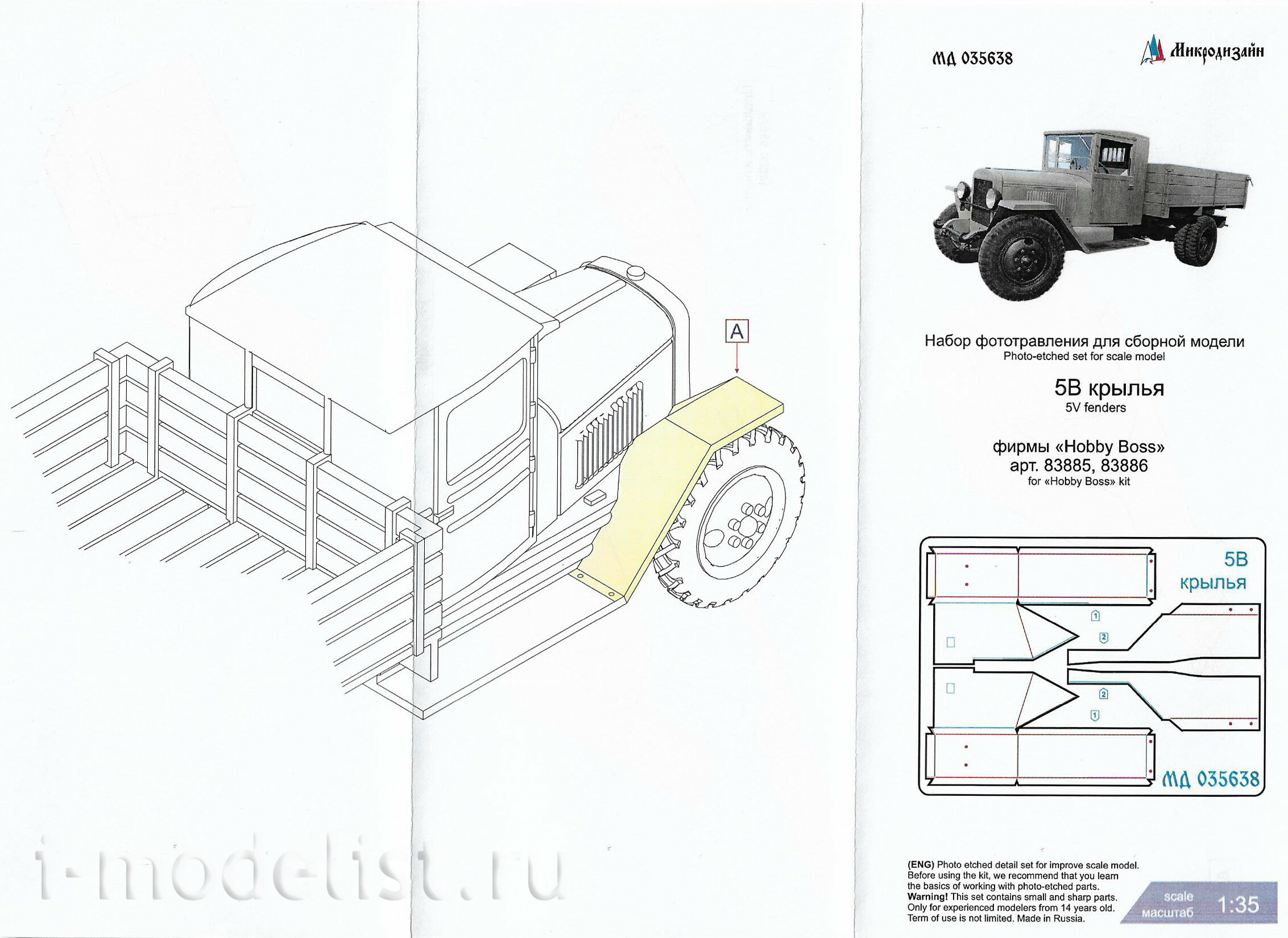 035638 Микродизайн 1/35 Набор фототравления крыльев для сборной модели З-5В (HobbyBoss)