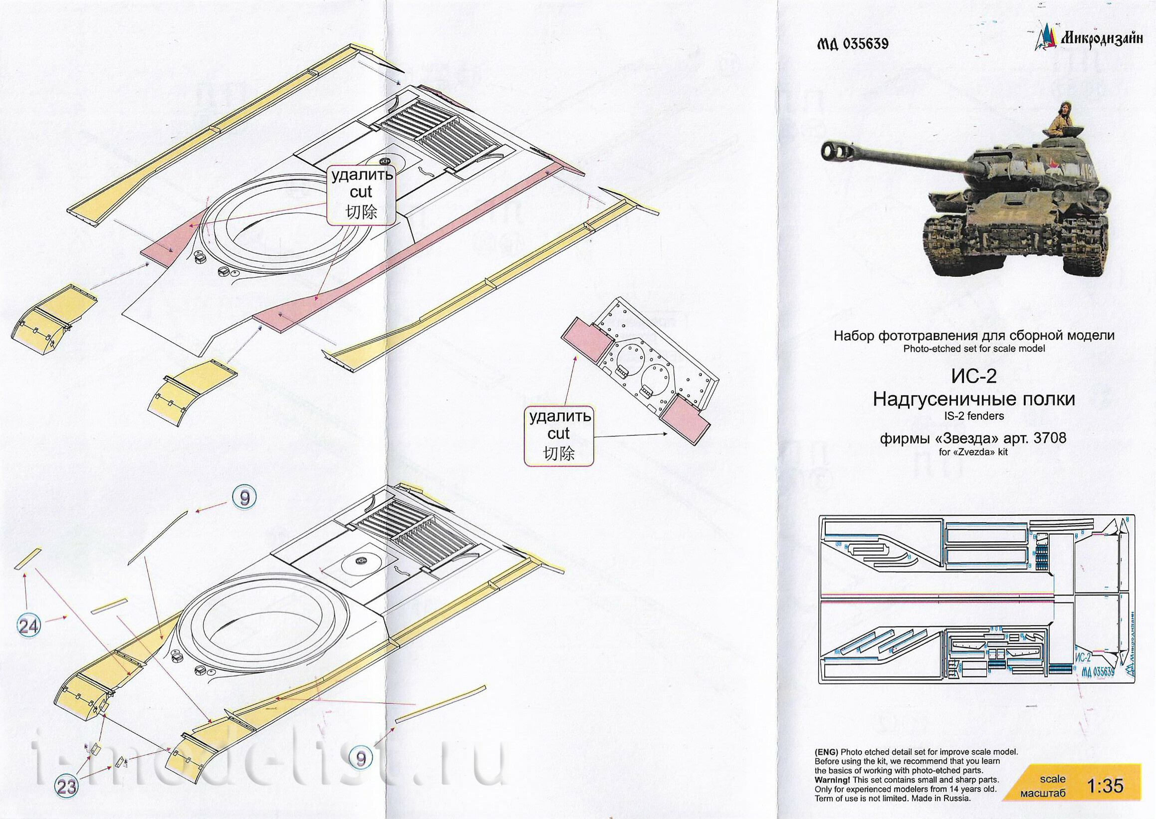 035639 Микродизайн 1/35 Набор фототравления надгусеничных полок на ИС-2 (Звезда)