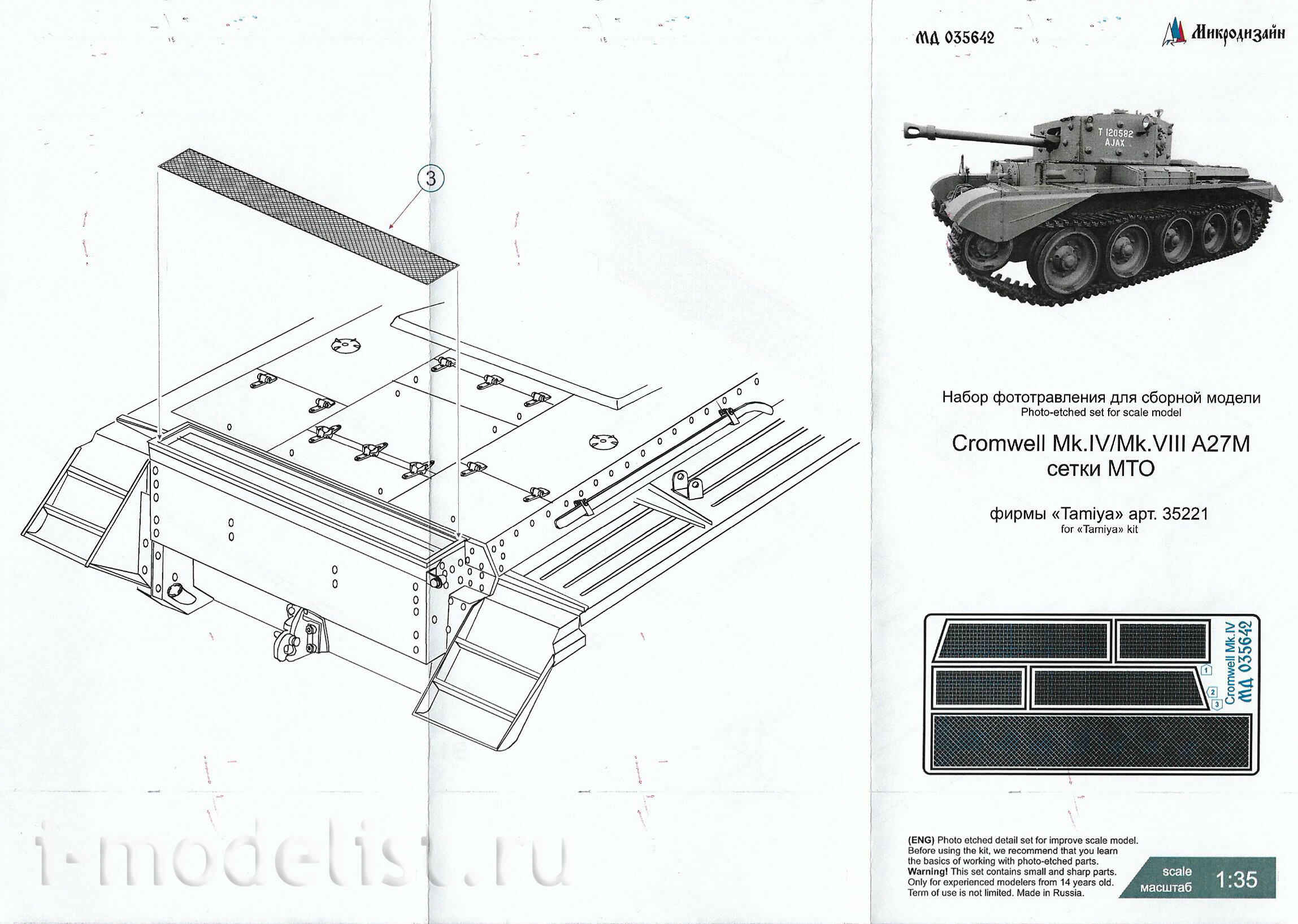 035642 Микродизайн 1/35 Набор фототравления сеток МТО на Cromwell Mk.IV (Tamiya)