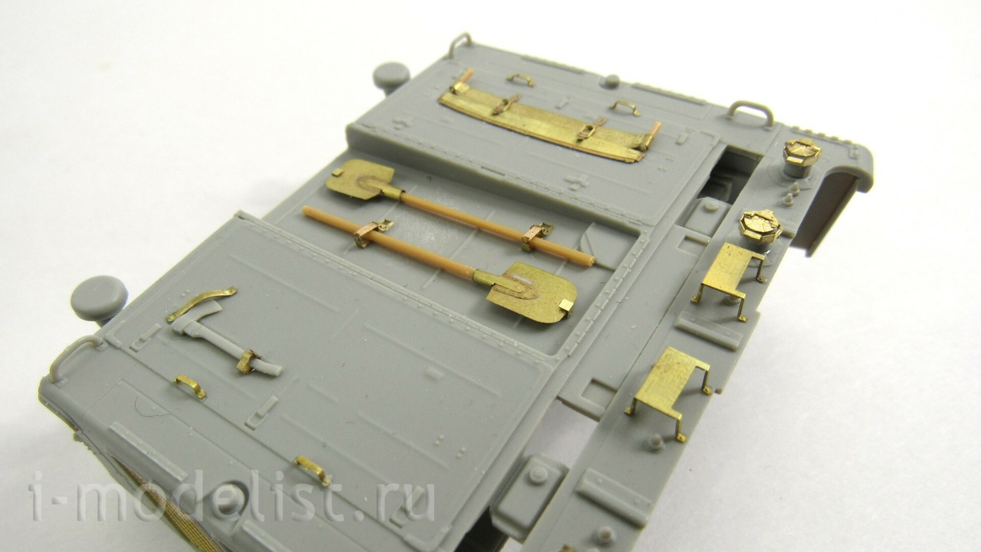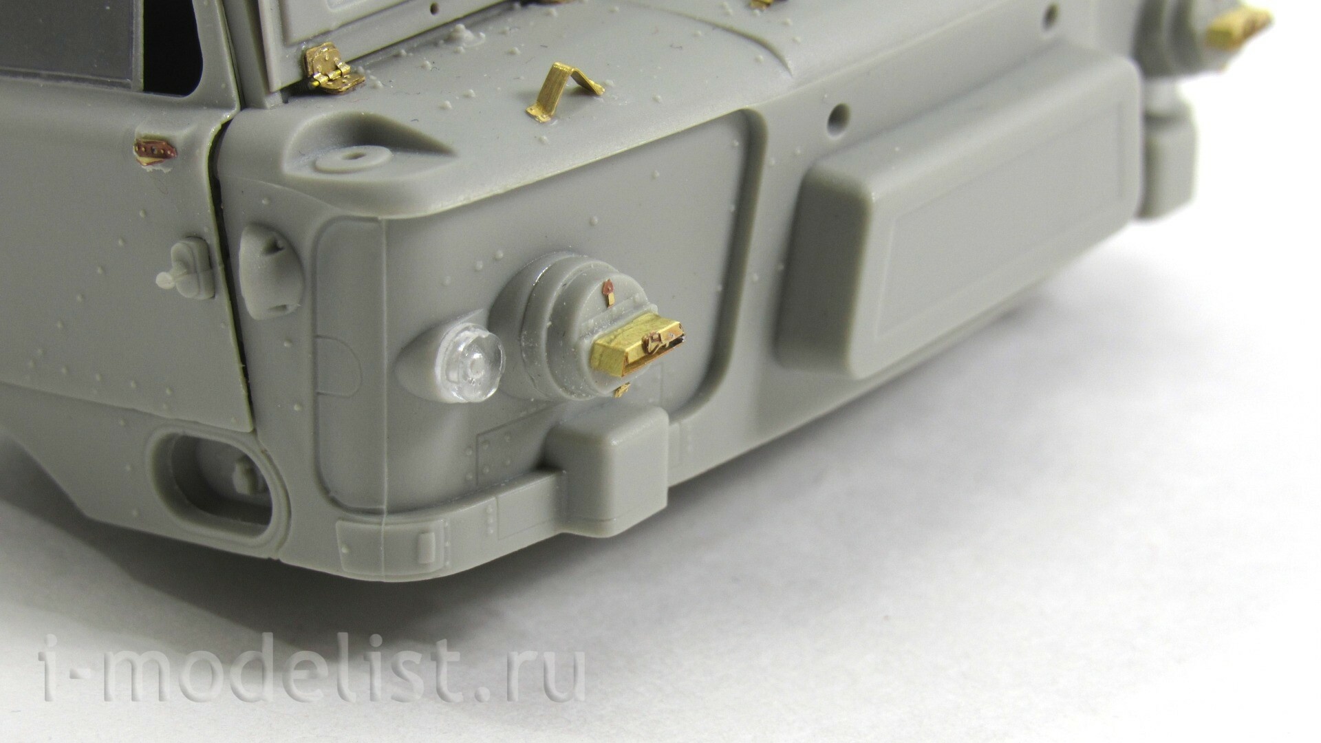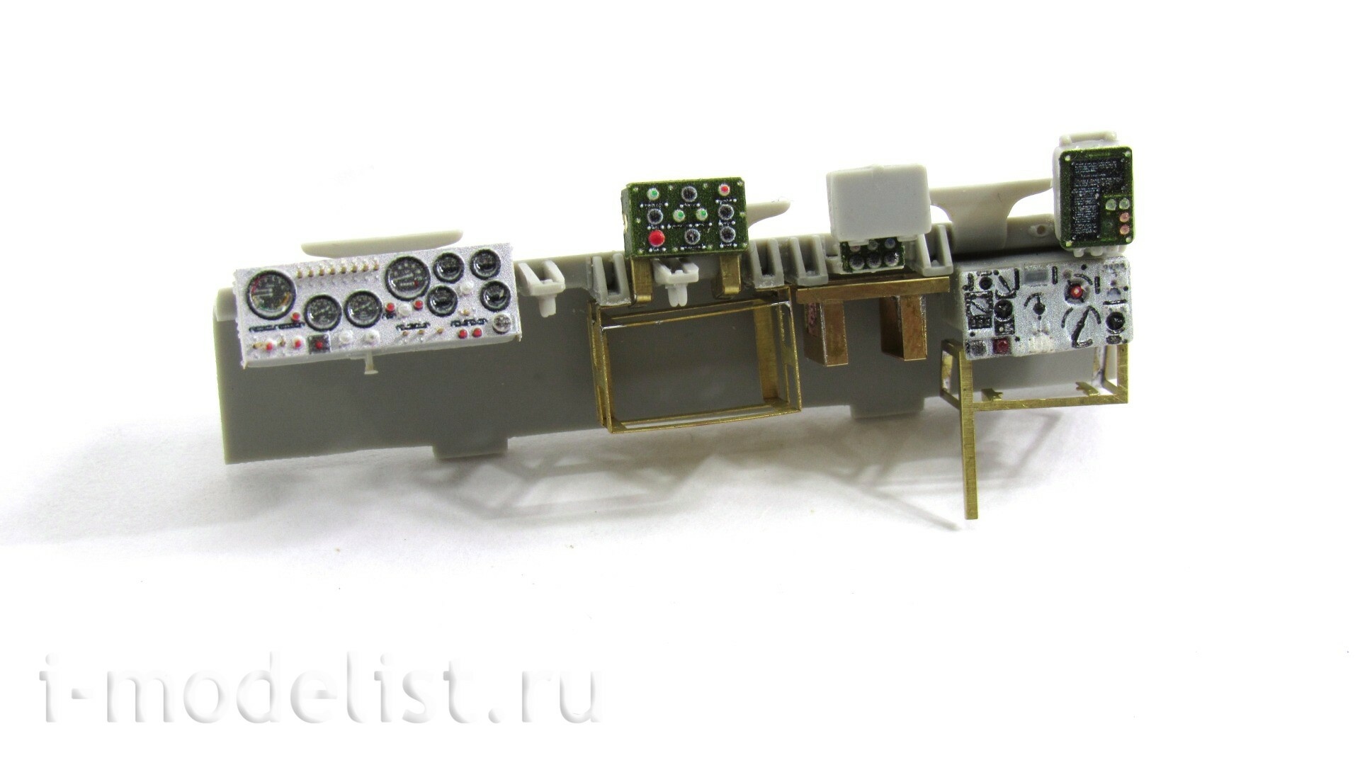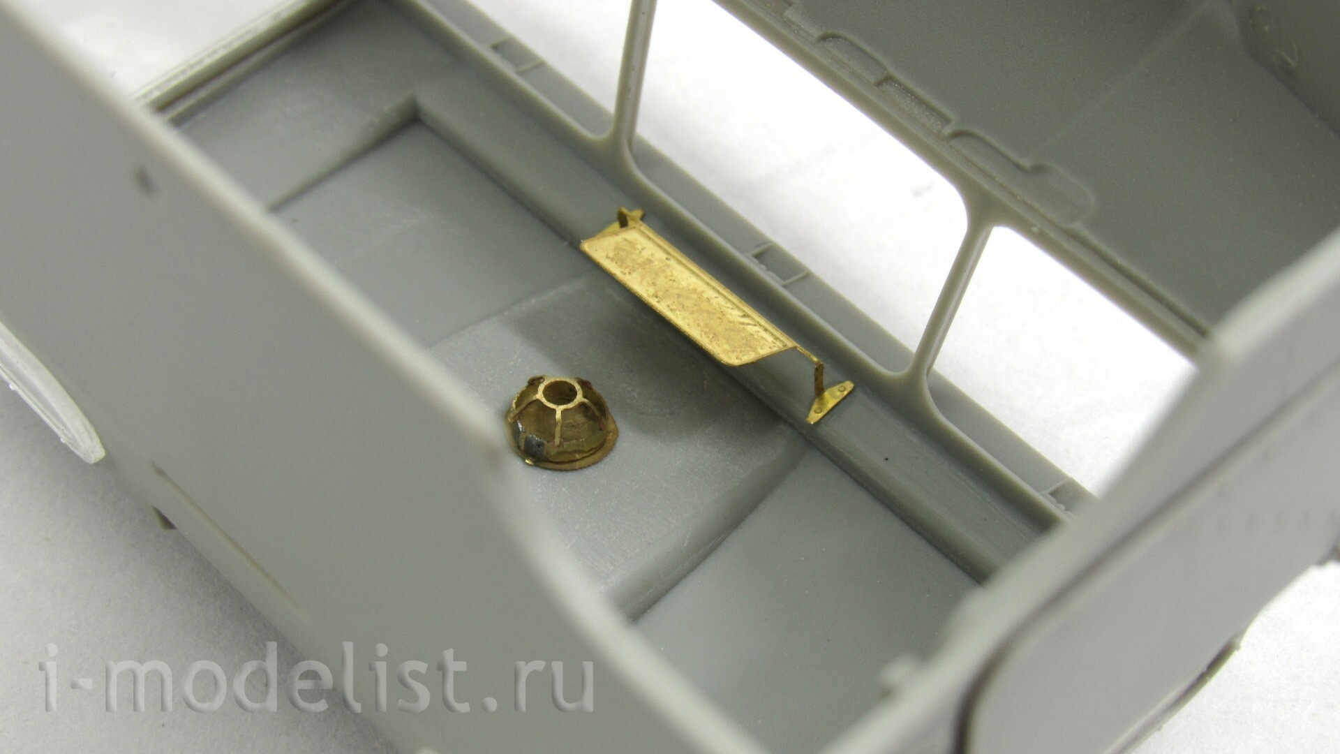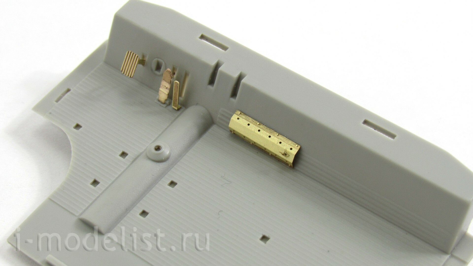 Материал: латунь 0,15 мм и 0,2 мм. Набор комплектуется 4 пластинами фототравления (в том числе цветными приборными досками), 1 плёнкой остекления элементов кабины и полноцветной инструкцией. Количество уникальных деталей: 220 шт.