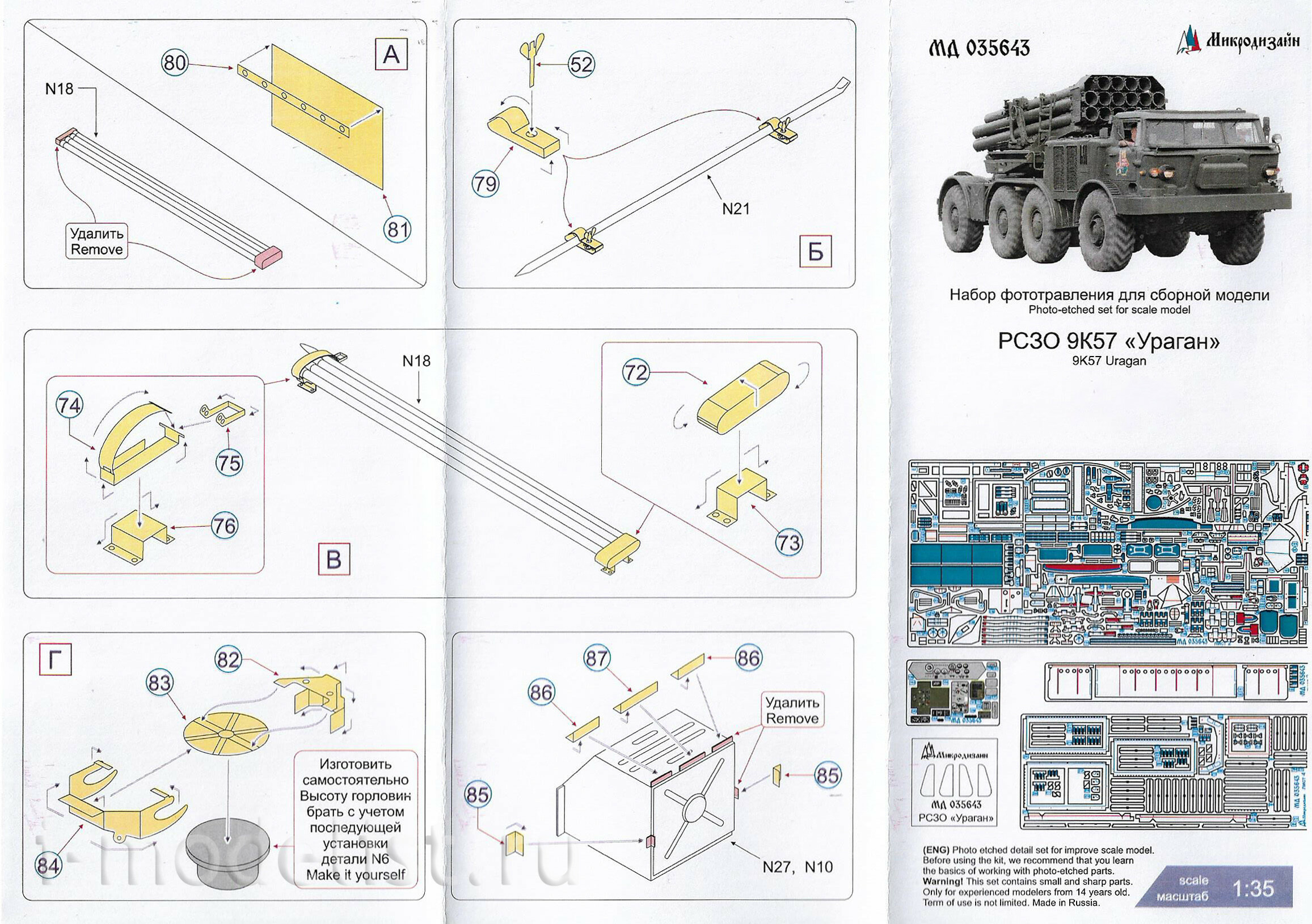 035643 Микродизайн 1/35 Набор фототравления РСЗО Ураган (Трубач)