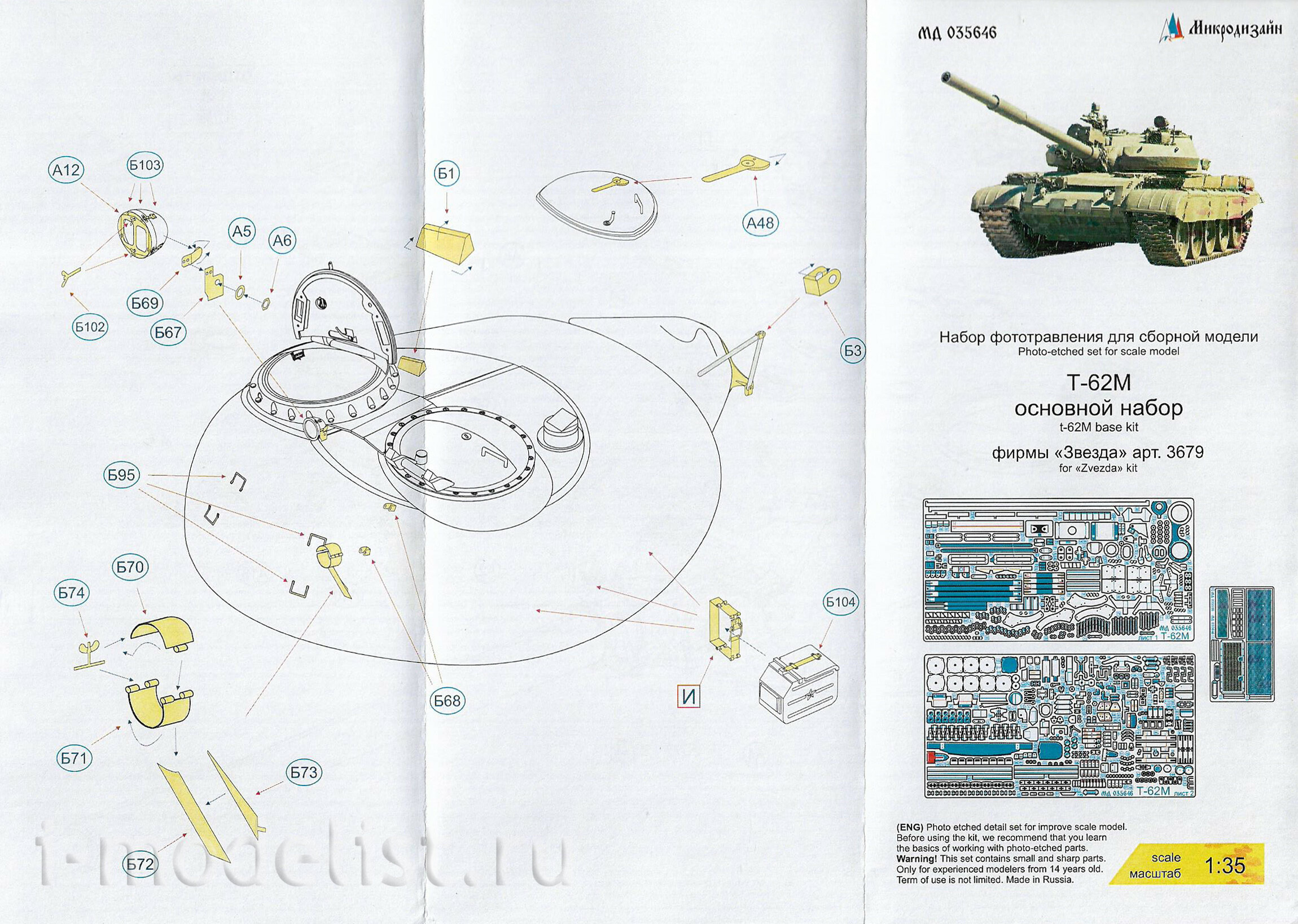 035646 Микродизайн 1/35 Набор базового фототравления на Т-62М (Звезда)