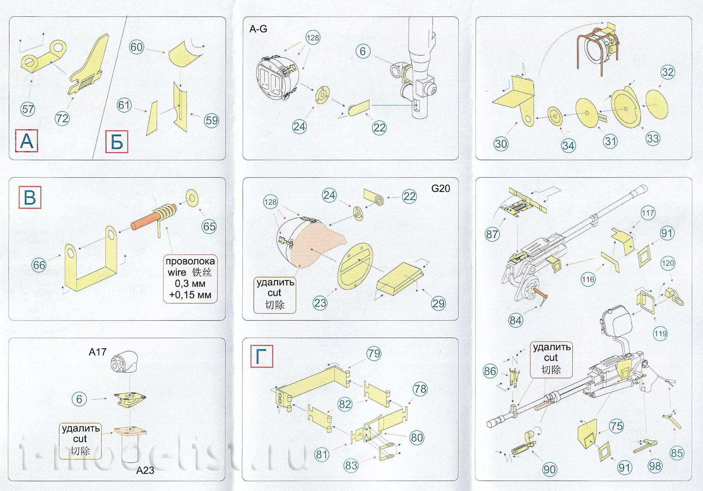 Материал: латунь 0.2 и 0,15 мм. Набор комплектуется 3 платами фототравления и цветной инструкцией. Количество уникальных деталей: 170.