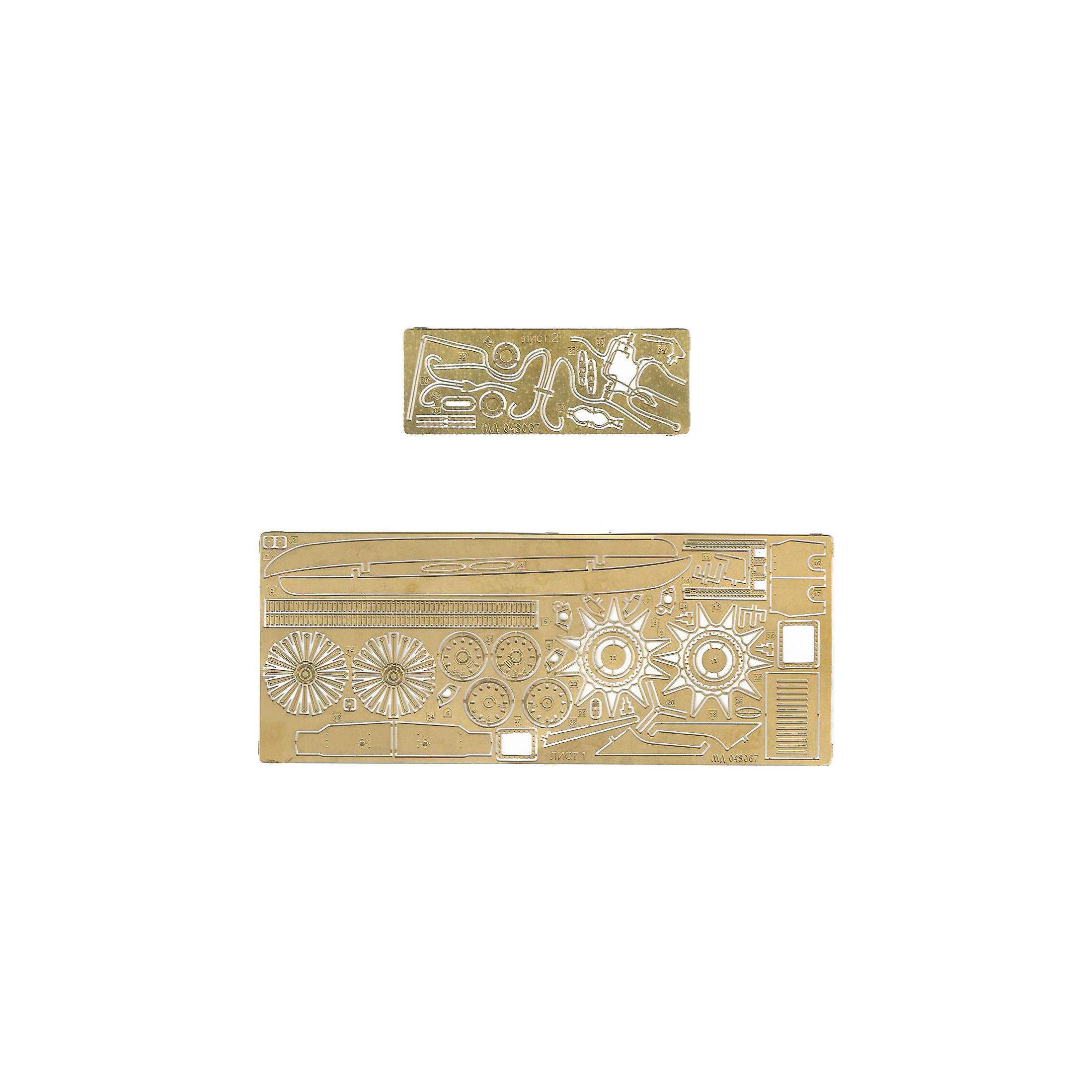 Материал: латунь 0,15 мм. Набор комплектуется 3 пластинами фототравления (в том числе одной цветной пластиной приборной доски, ремней), деталями, выполненными на виниловой основе и полноцветной инструкцией. Количество уникальных деталей 57.