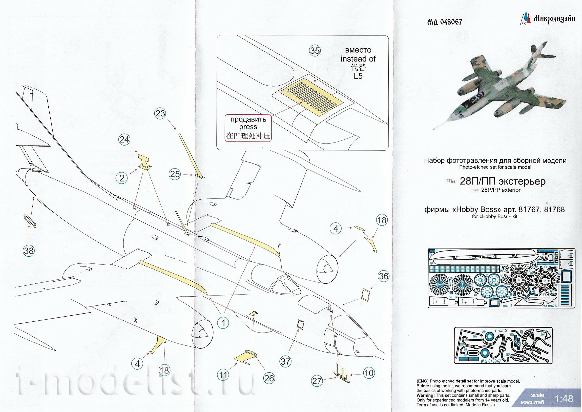 048067 Микродизайн 1/48 Набор фототравления интерьера на Як-28П/ПП (HobbyBoss)