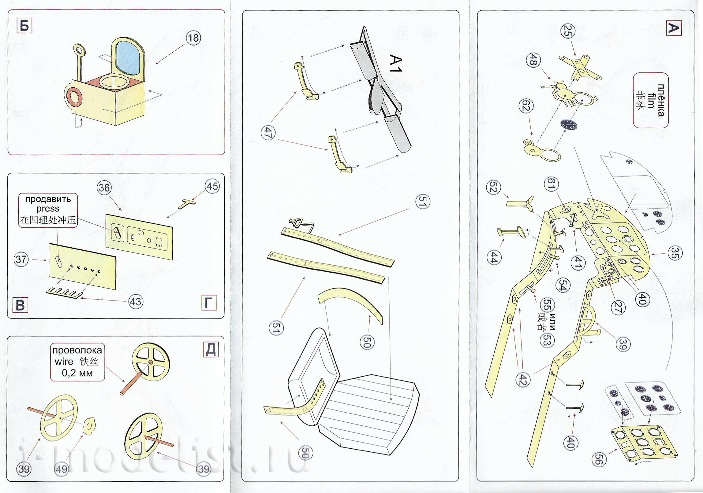 Материал: латунь 0,15 мм. Набор комплектуется 2 пластинами фототравления плёнкой приборных досок и полноцветной инструкцией. Количество уникальных деталей 61.
