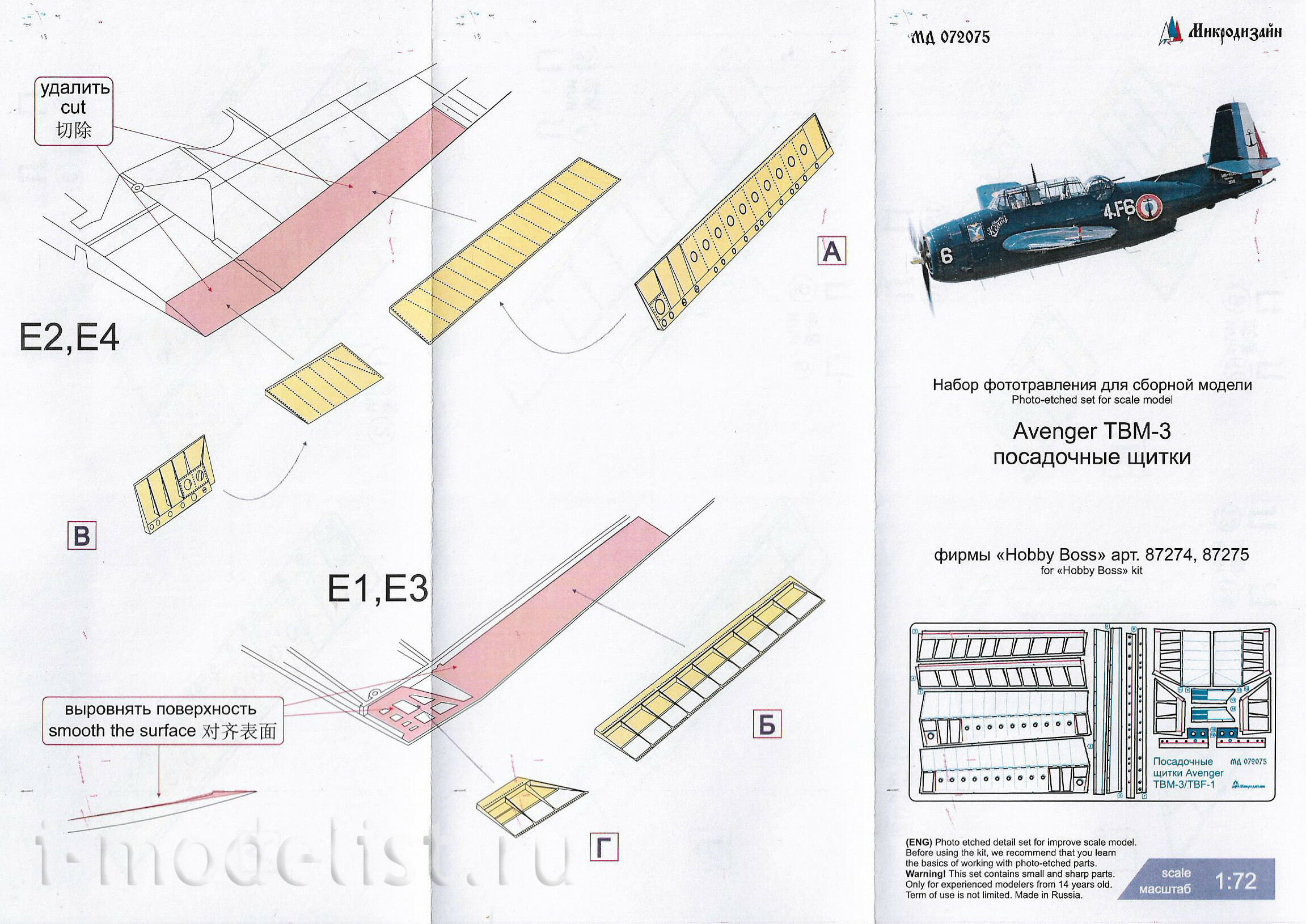 072075 Микродизайн 1/72 Набор фототравления тормозных щитков для Avenger TBM-3 (HobbyBoss)