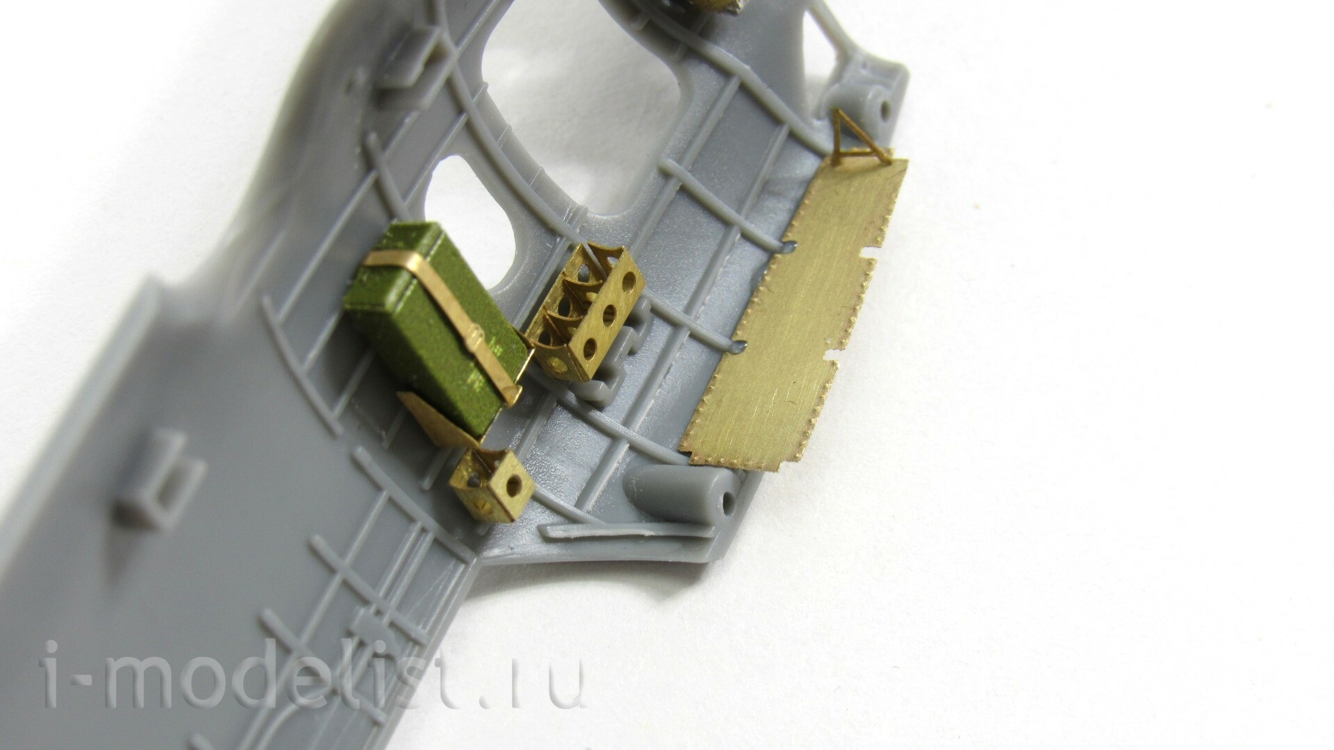 Материал: латунь 0,15 мм. Набор комплектуется 2 платами фототравления (в том числе объёмные цветные приборные доски) и цветной инструкцией. Количество уникальных деталей: 83 шт.