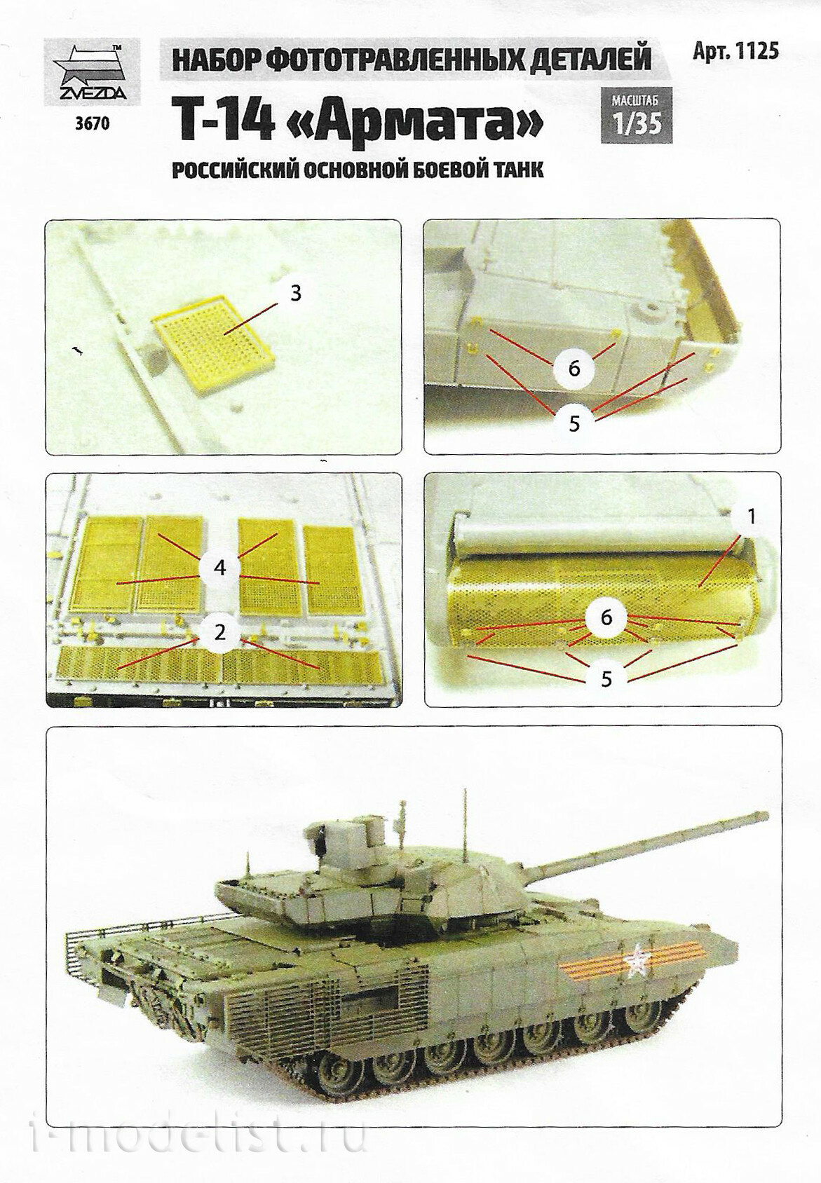 1125 Звезда 1/35 Набор фототравленных деталей для модели танка «Армата»