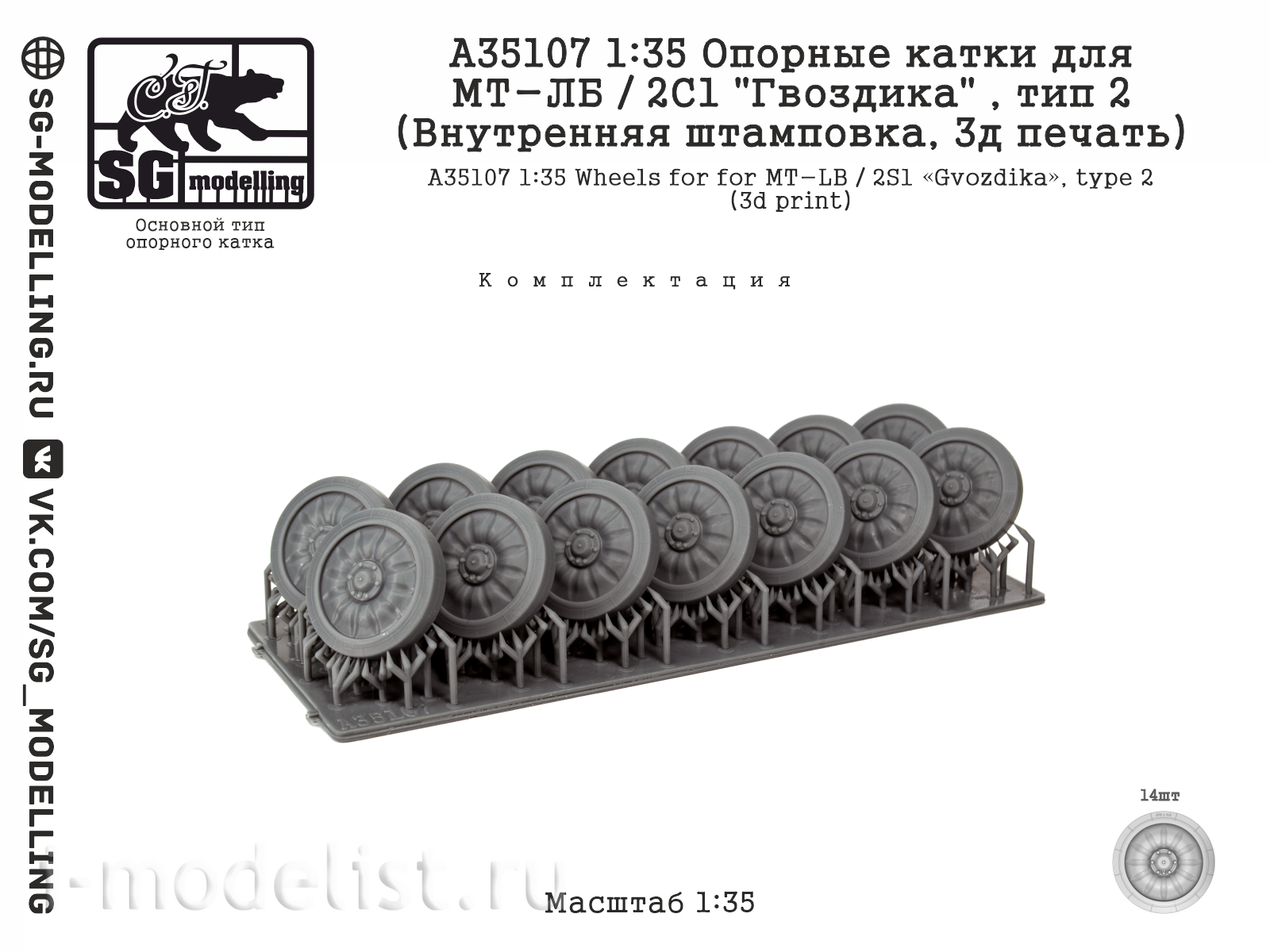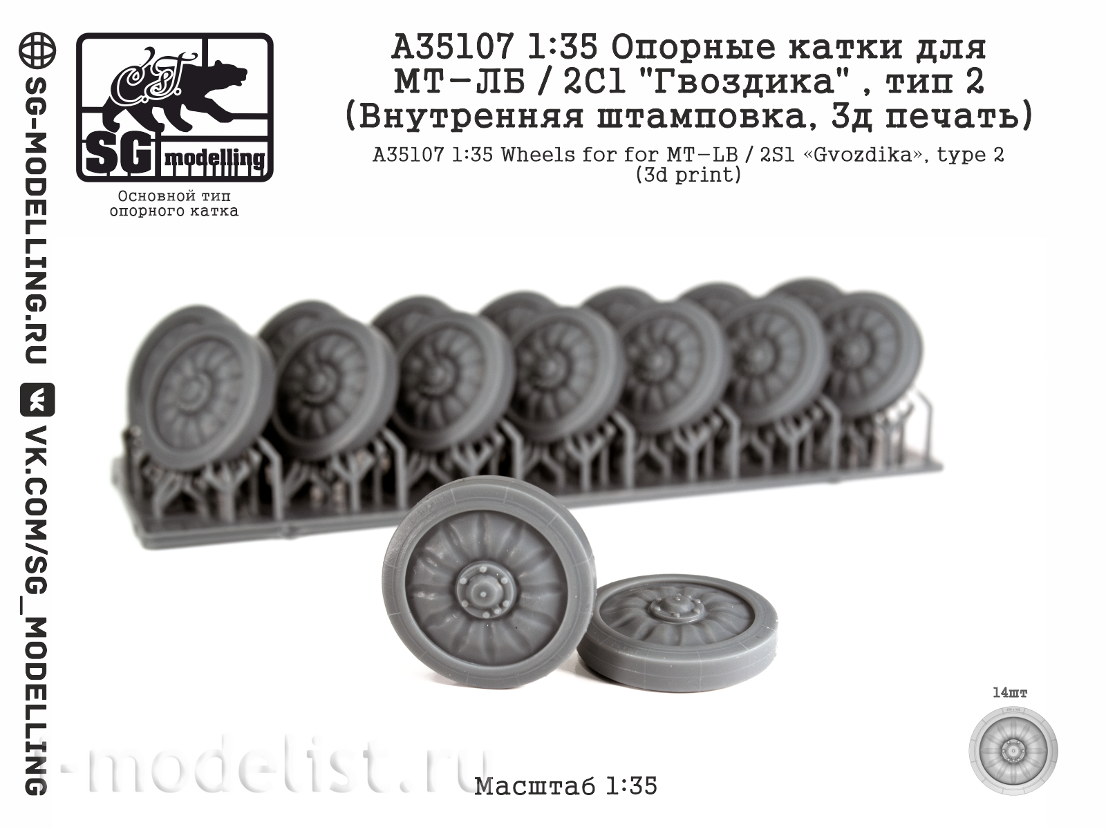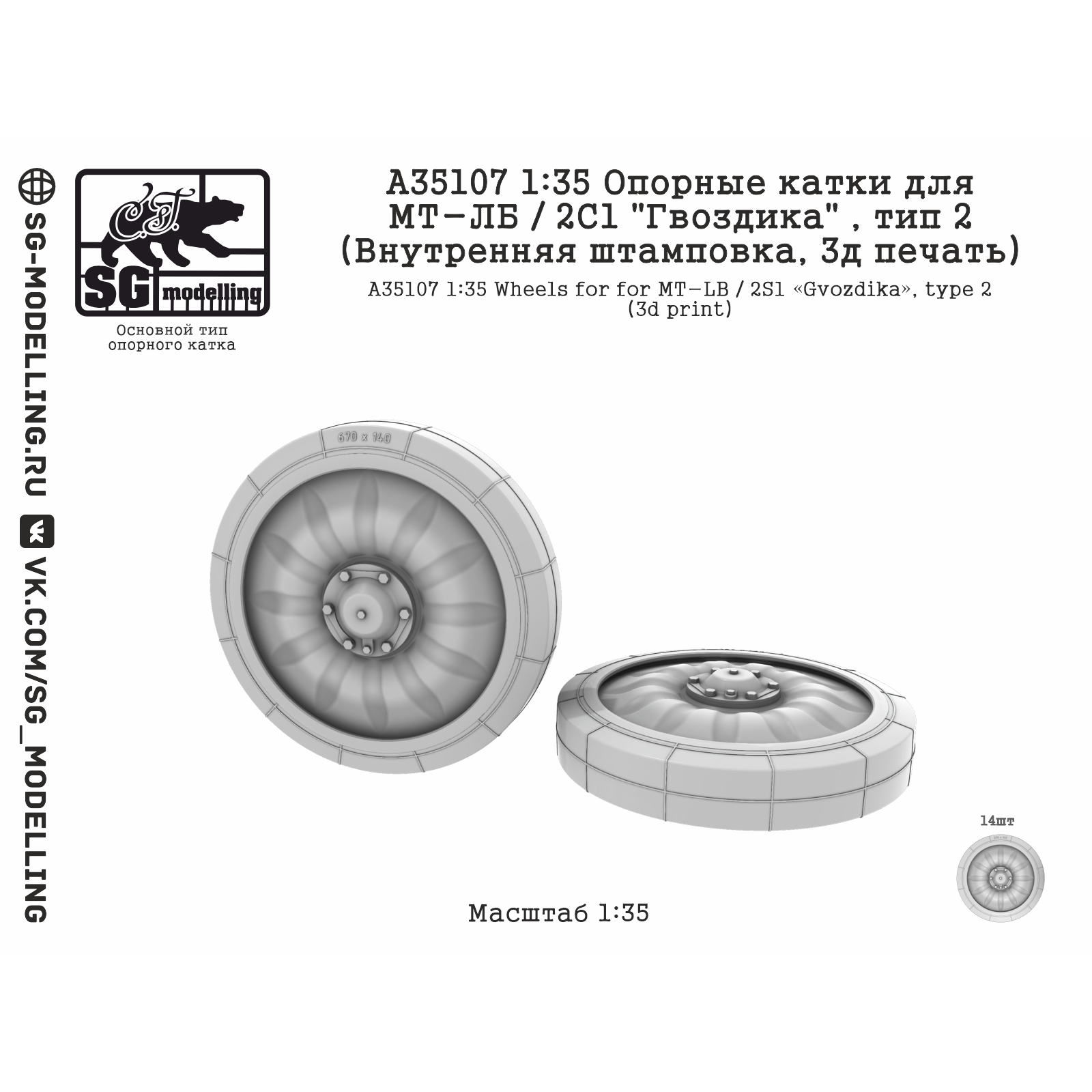 A35107 SG Modelling 1/35 Опорные катки для МТ-ЛБ / 2С1 "Гвоздика", тип 2 (Внутренняя штамповка, 3D-печать)