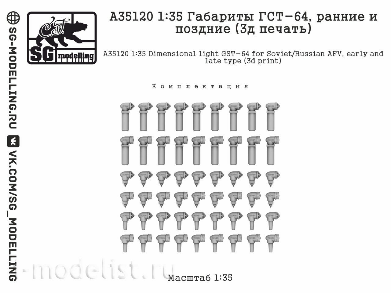 A35120 SG Modelling 1/35 Габариты ГСТ-64, ранние и поздние (3D-печать)