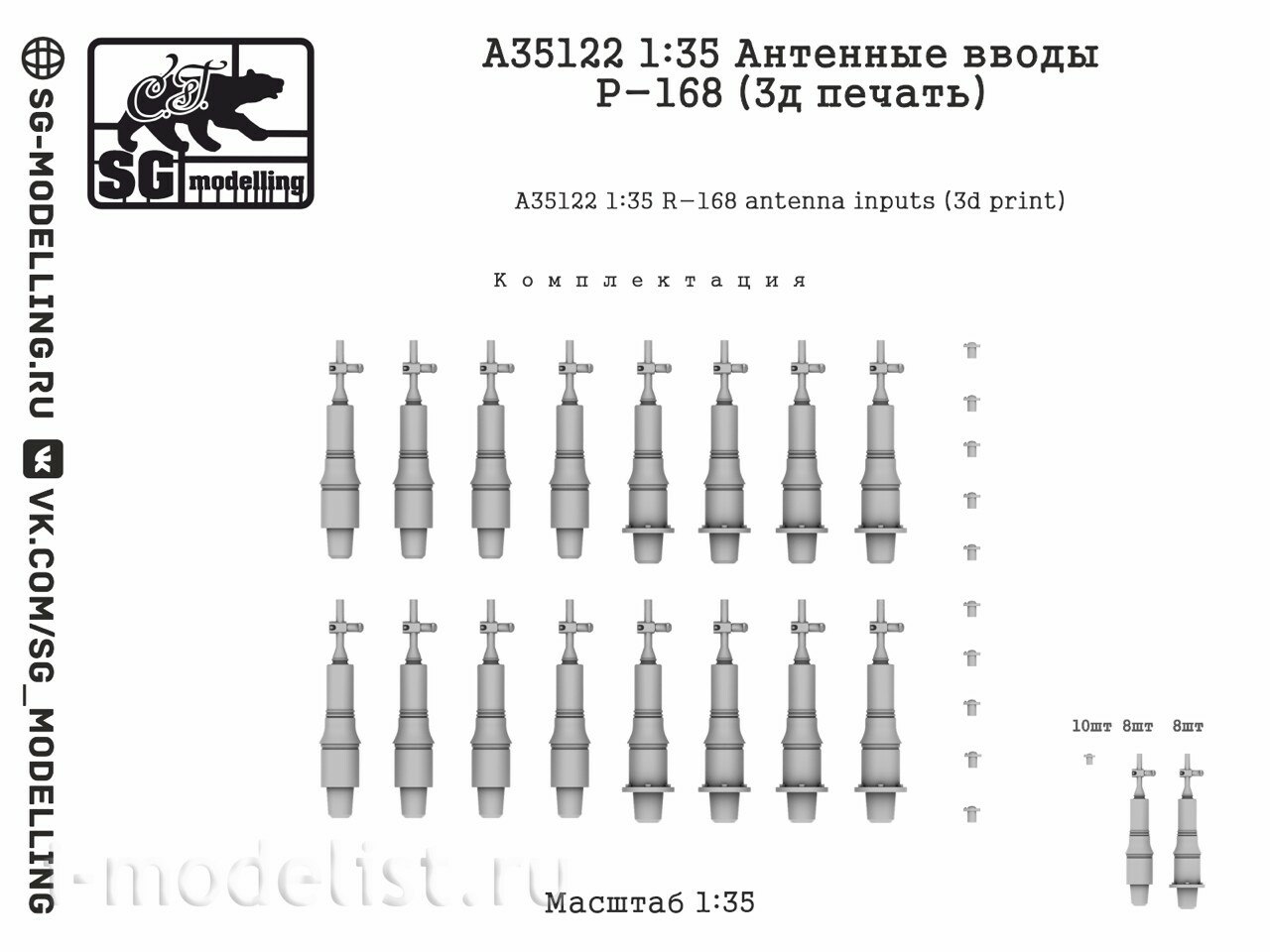 A35122 SG Modelling 1/35 Антенные вводы Р-168 (3D-печать)