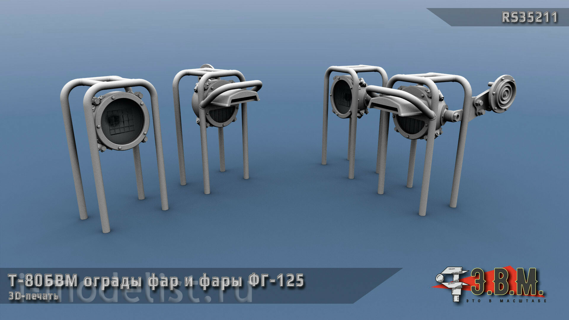 В комплекте защитное ограждение фар и сами фары ФГ-125 для моделей танка Т-80БВМ.