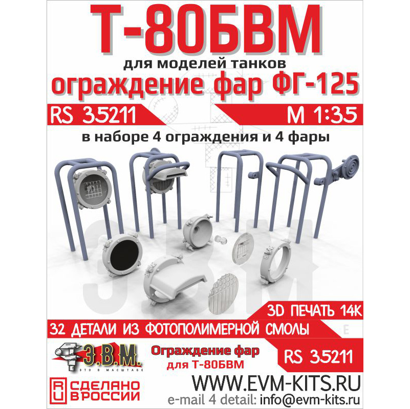 RS35211 Э.В.М. 1/35 Ограды фар и фары ФГ-125 Т-80БВМ
