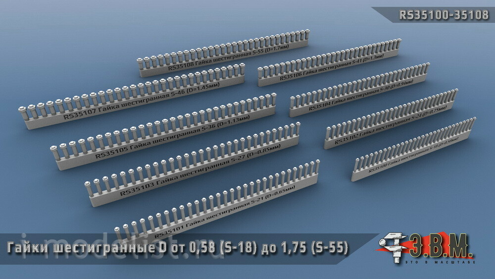 RS35100 Э.В.М. 1/35 Гайка шестигранная S=18 (D=0,58). Посадочный D=0.4 мм