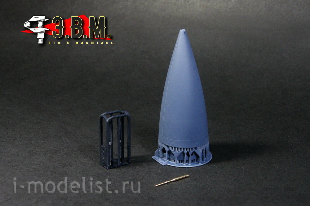В наборе носовой обтекатель из фотополимерной смолы, печать 14К и ПВД, сделанный из двух частей: одна - точеная из латуни, вторая - с генераторами вихрей так же напечатана на 3Д принтере. Для печатной части ПВД в набор добавлено армирование для придания дополнительной жесткости.