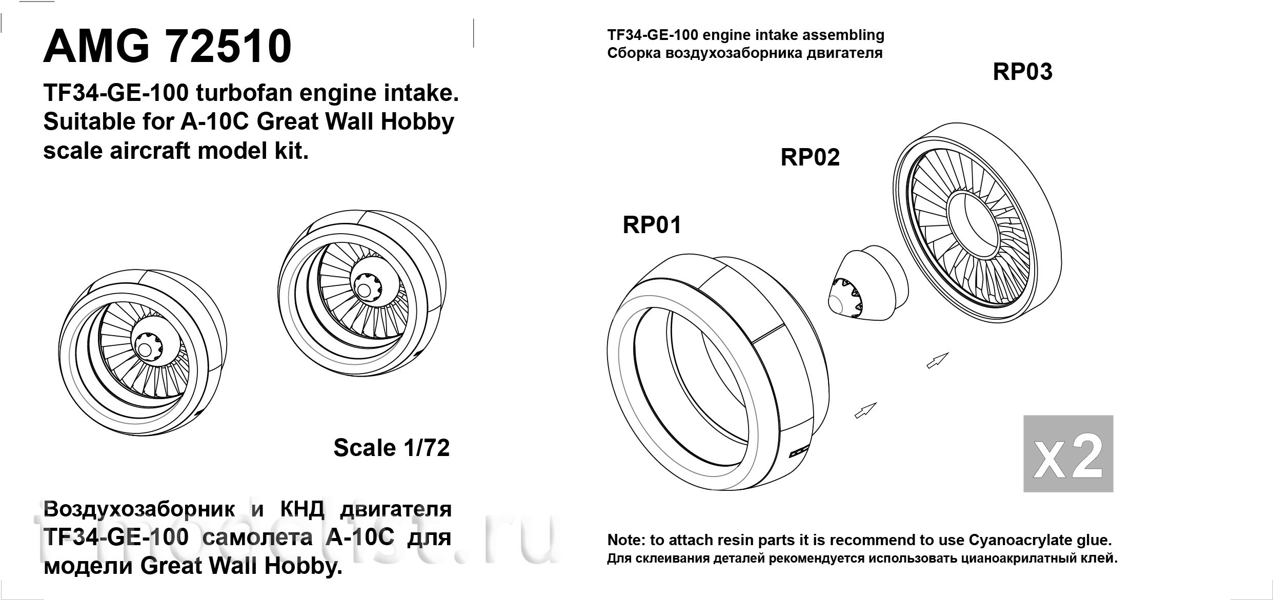 АМG72510 Amigo Models 1/72 A-10C Воздухозаборники и КНД для модели G.W.H.