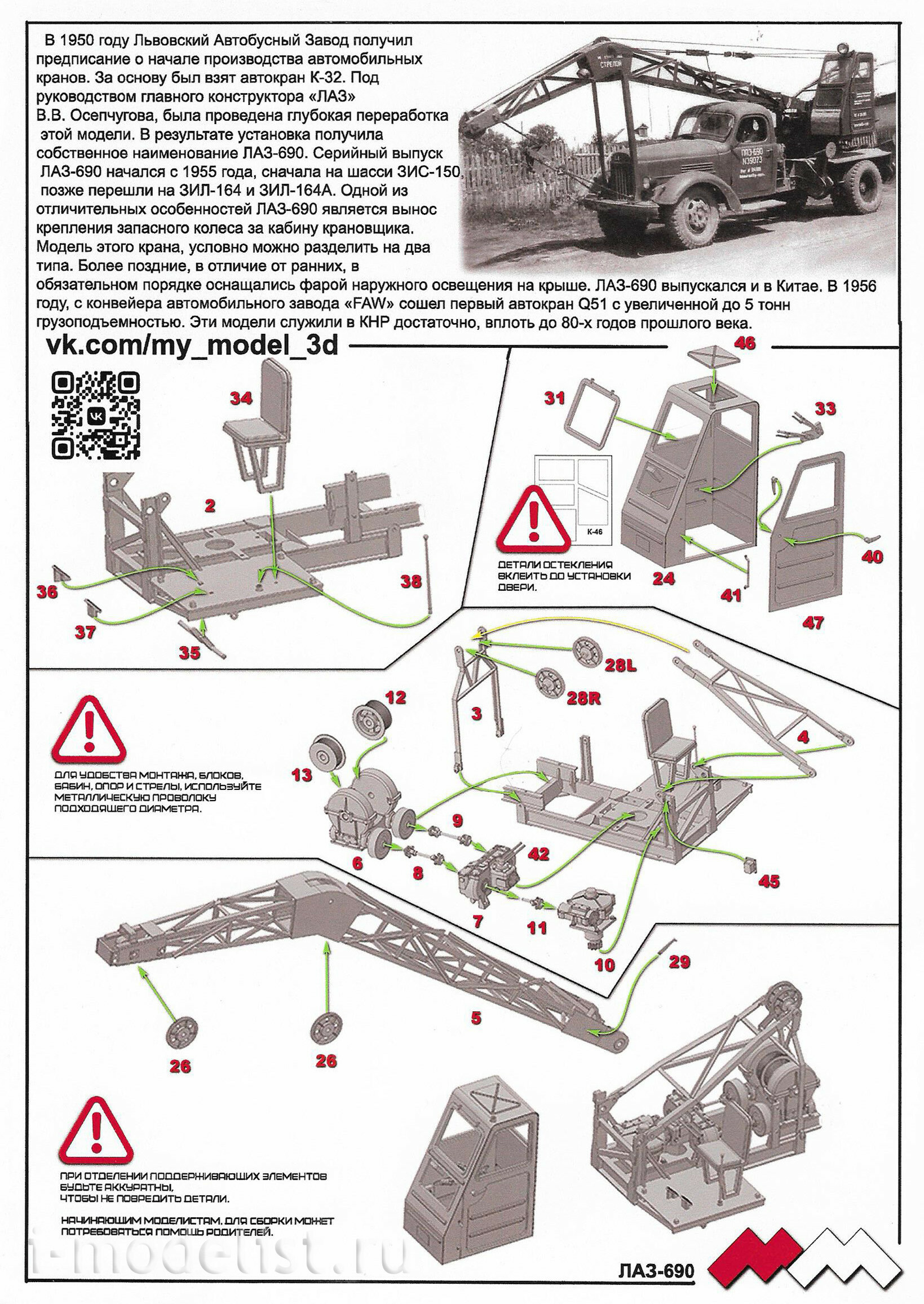 ММ43016 Моя модель 1/43 Автокран ЛАЗ-690 на базе З-164 конверсия