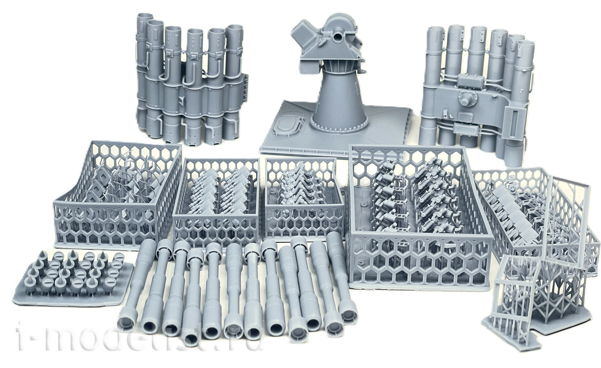 Набор включает в себя "адаптер" для установки вместо башни танка и постамент из швеллеров. Размеры подобраны под погон башни семейства Т-80 Трубач. "Адаптер" нужен что бы перекрыть отверстие погона башни по размеру. Если захочется поставить РБУ на Т-72 от Meng (например), адаптер можно не использовать и поставить только постамент.