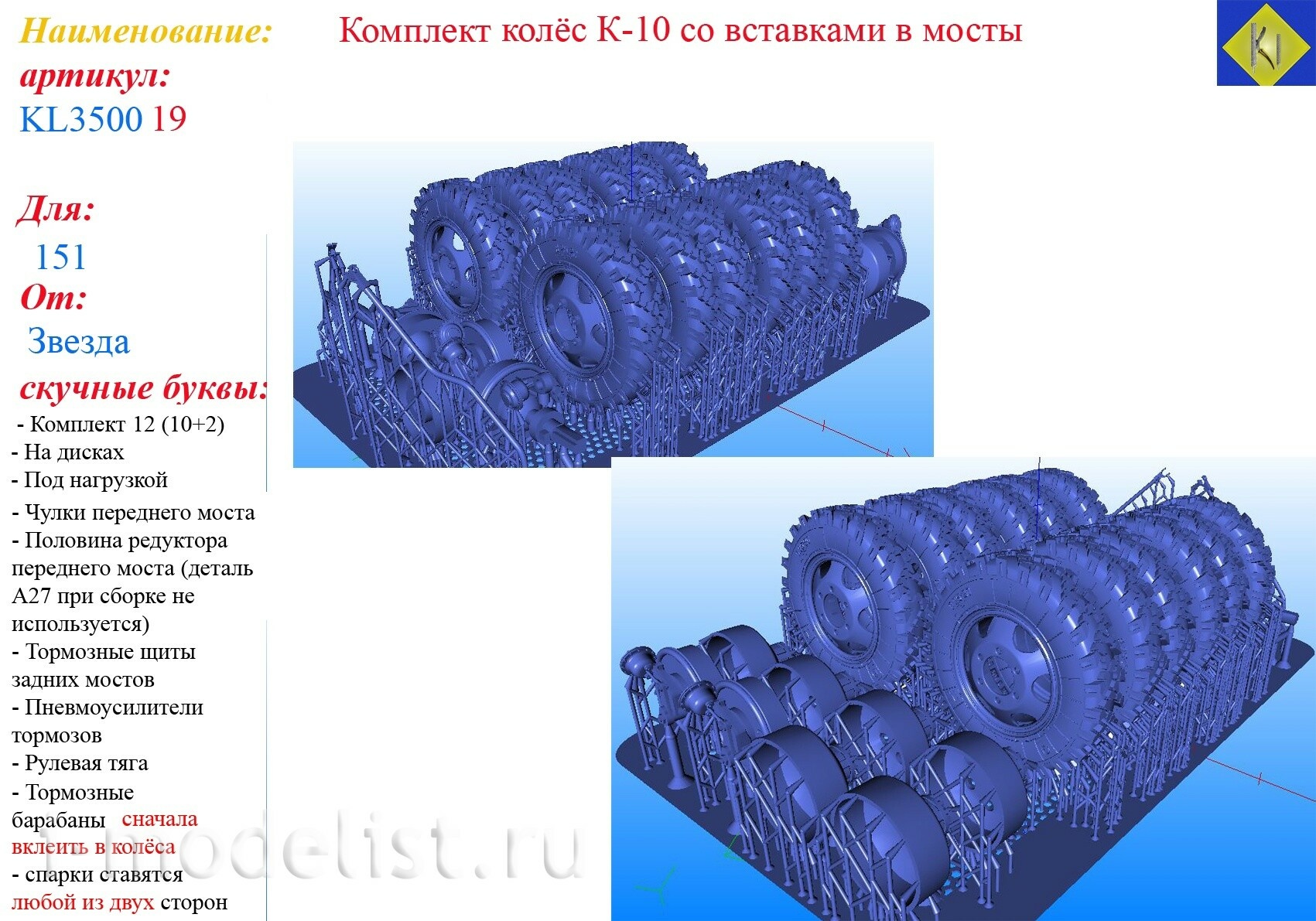 KL350019 Kraft Lab 1/35 Комплект колёс К-10 с вставками в мосты