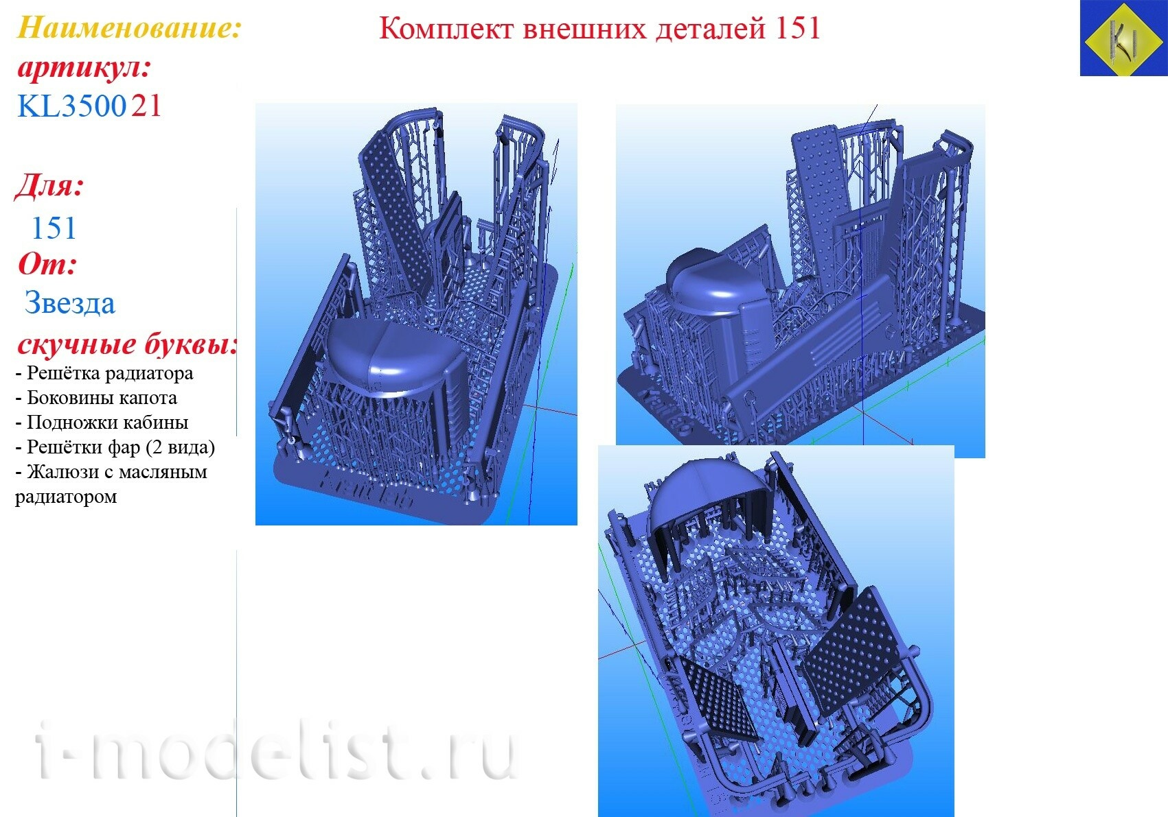 KL350021 Kraft Lab 1/35 Комплект внешних деталей для З-151 (Звезда)