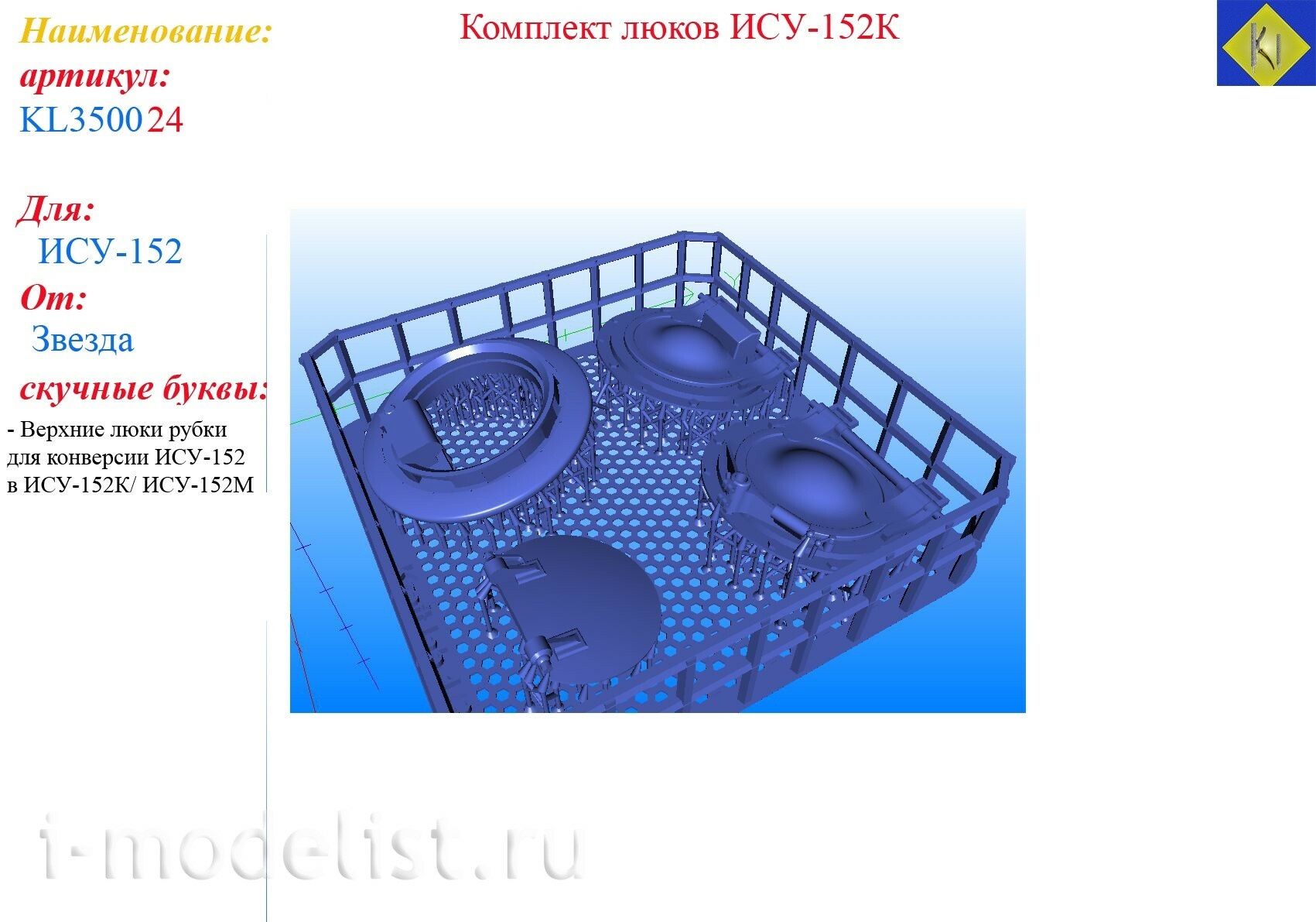 KL350024 Kraft Lab 1/35 Комплект люков для ИСУ-152К (Звезда)