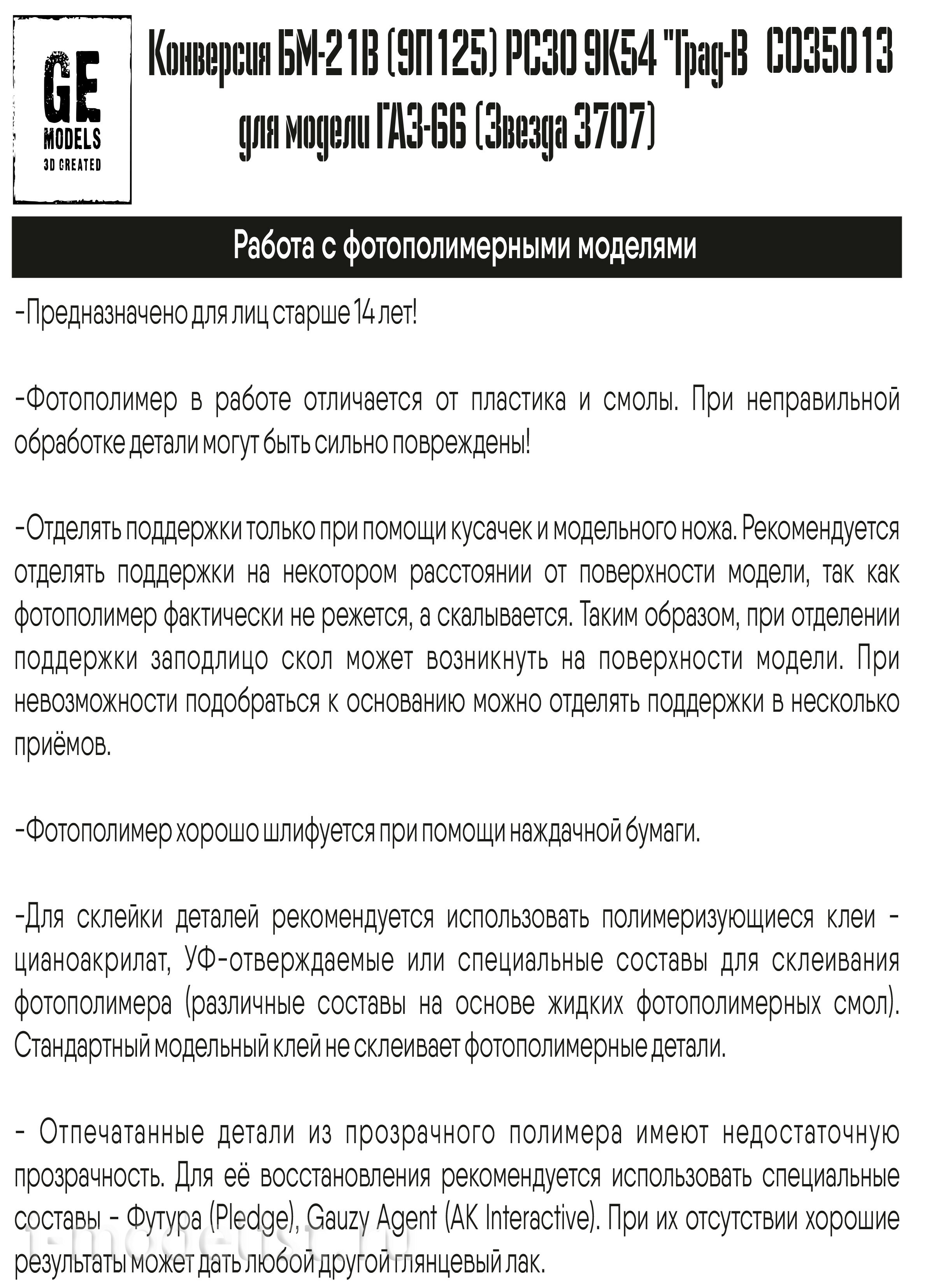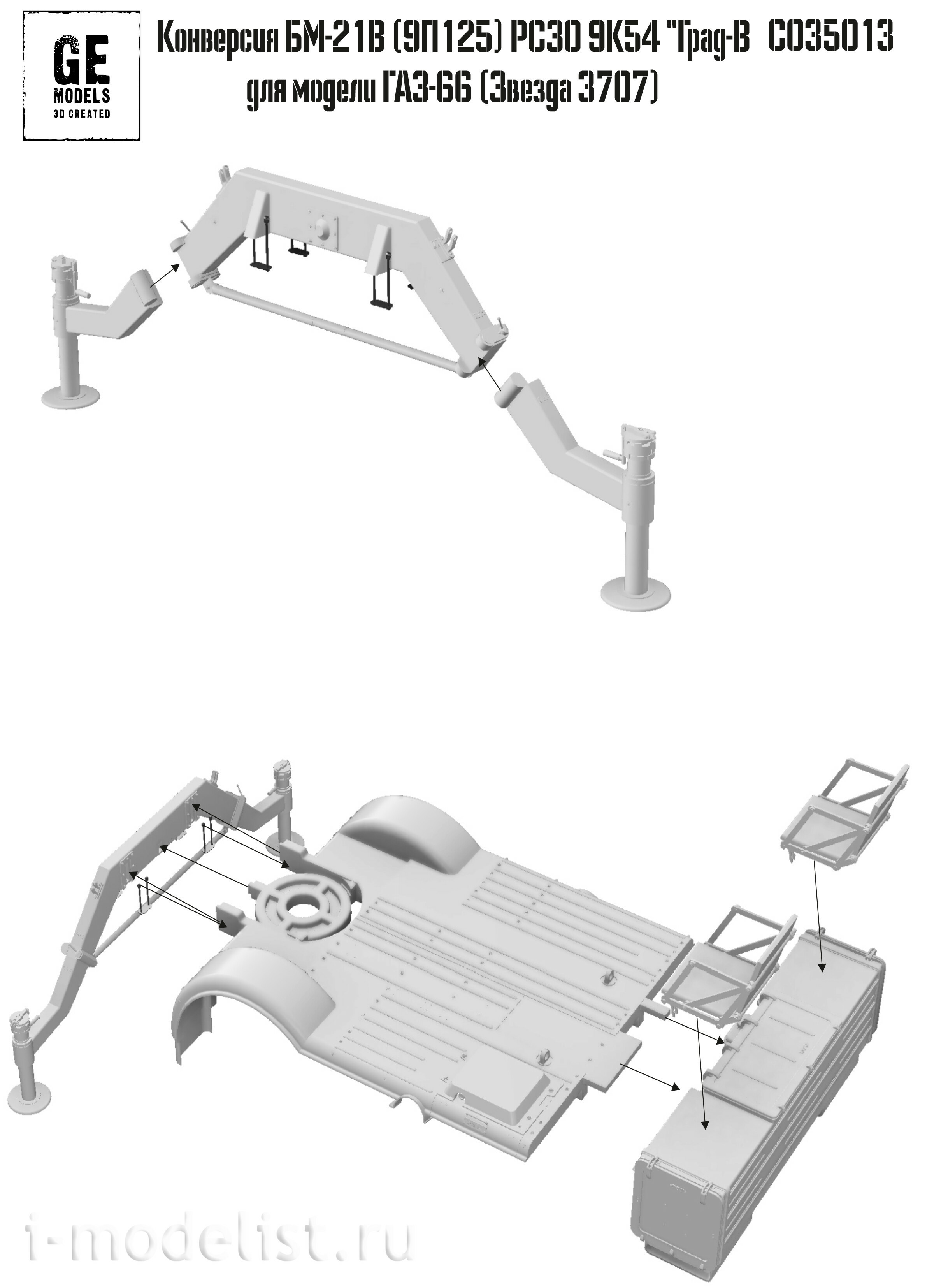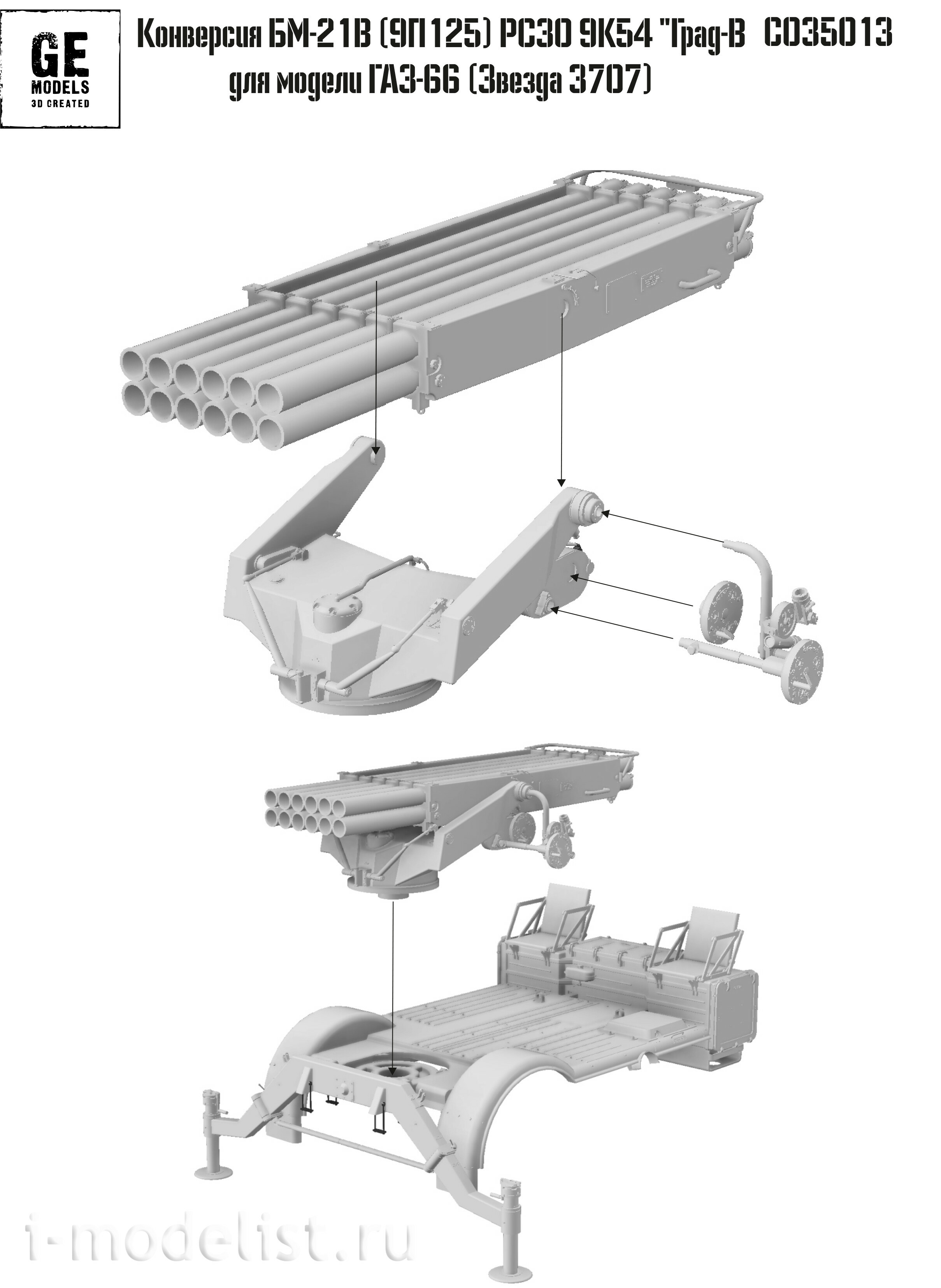 CO35013 GE Models 1/35 Конверсия в БМ-21В (9П125) РСЗО 9К54 "Град-В" на шасси модели фирмы "Звезда", арт. 3707 (возможна сборка в боевом и в походном положении)