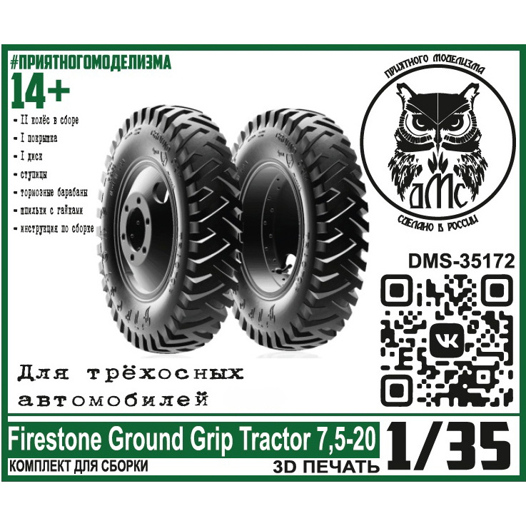 DMS-35172 ДМС 1/35 Колёса Firestone Ground Grip Tractor 7,5-20, для трёхосных автомобилей