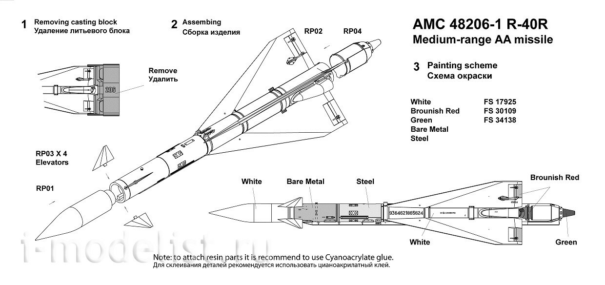АМС48206-1 Advanced Modeling 1/48 Р-40Р Авиационная управляемая ракета класса «Воздух-воздух»