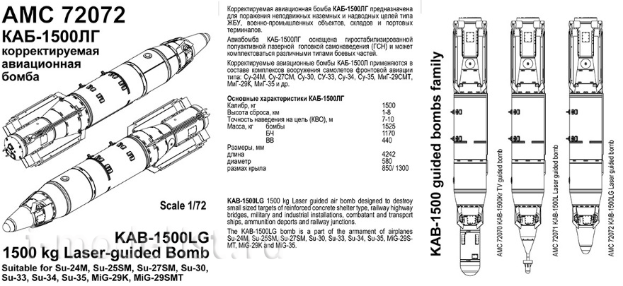 AMC72072 Advanced Modeling 1/72 КАБ-1500ЛГ Корректируемая авиационная бомба калибра 1500 кг
