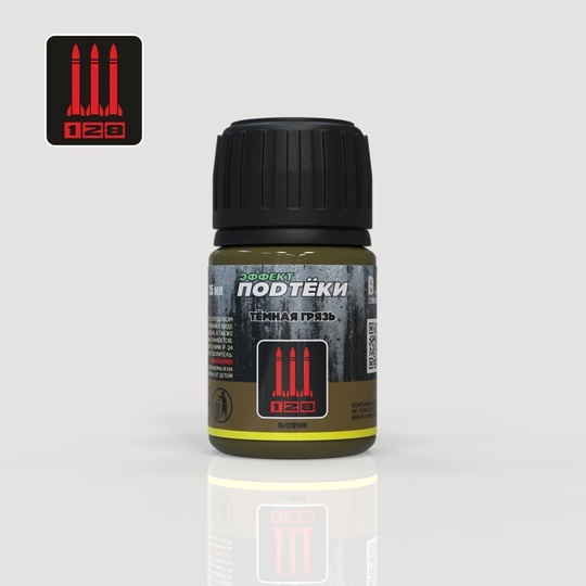 Эффект Подтёки это состав разработанный для имитации подтёков грязи. Ржавчины и других природных эффектов на сборной модели. Серия Эффект Подтёки не имеет привязки к конкретным прототипам, может применятся в любой сфере стендового моделизма. Состав не имеет резкого запаха, разбавлять Уайт спиритом Р-24 или премиум растворителем Р-28. Поставляется в таре 35мл. с черной крышкой, крышка оснащена прокладкой. Этикетка устойчива к летучим растворителям и уайт спиритам. Мелкодисперсный осадок состава в таре в порядке нормы, после длительного отстоя необходимо хорошо взболтать. Срок годности 2 года.