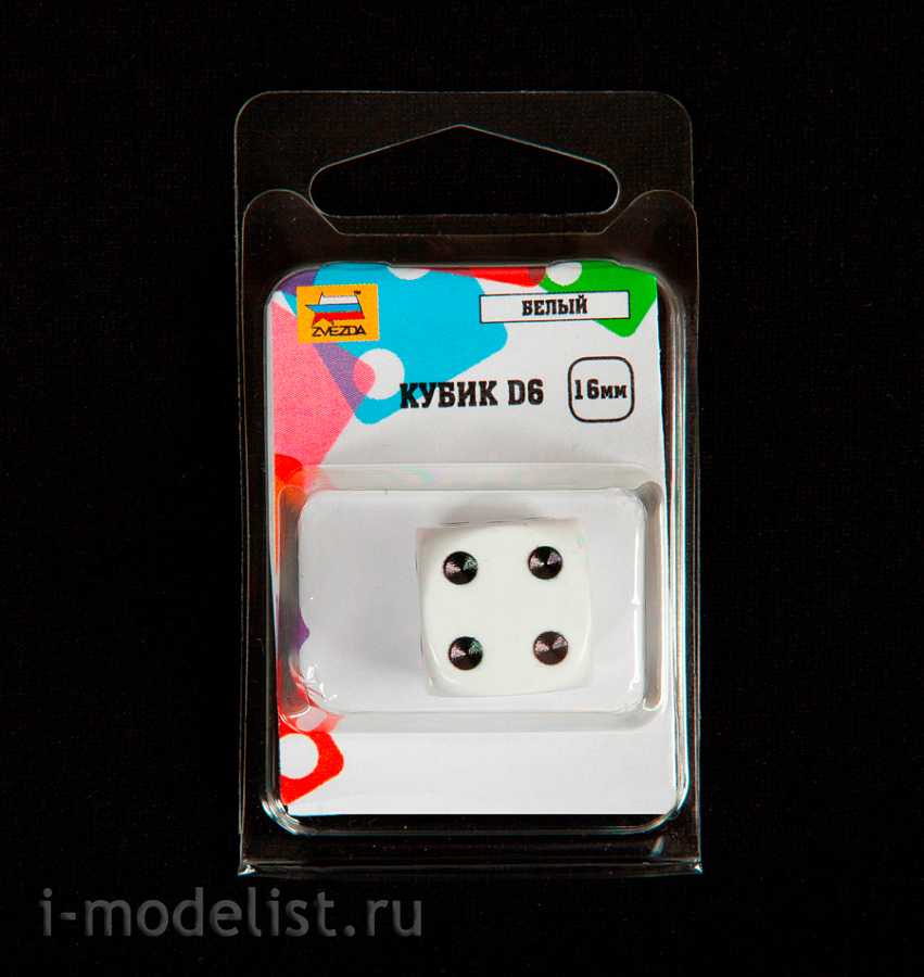 1211 Звезда Кубик D6, 16 мм. Белый с черными точками в блистере