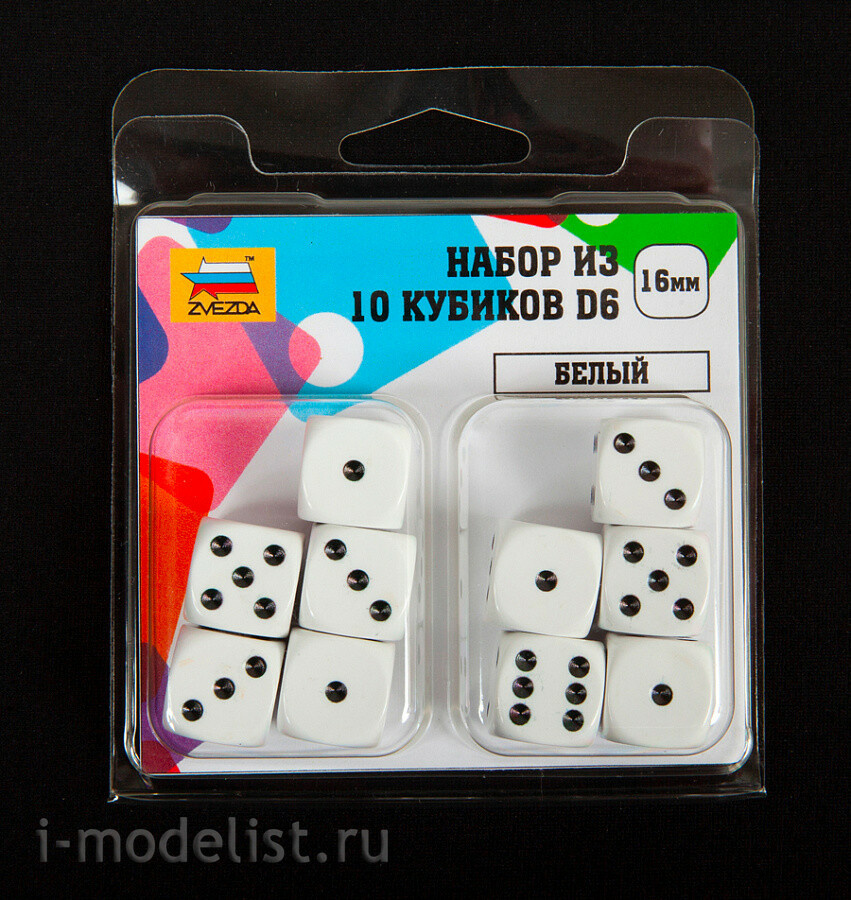 1214 Звезда Набор из 10 кубиков D6, 16мм. Белый с черными точками в блистере