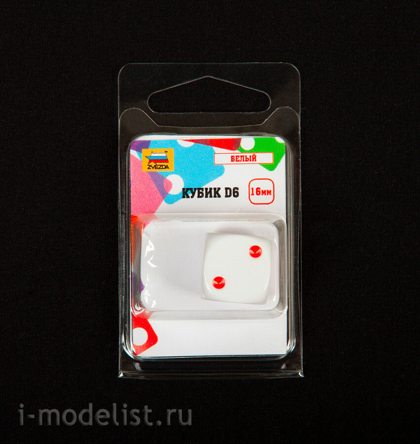 1215 Звезда Кубик D6, 16мм. Белый с красными точками в блистере