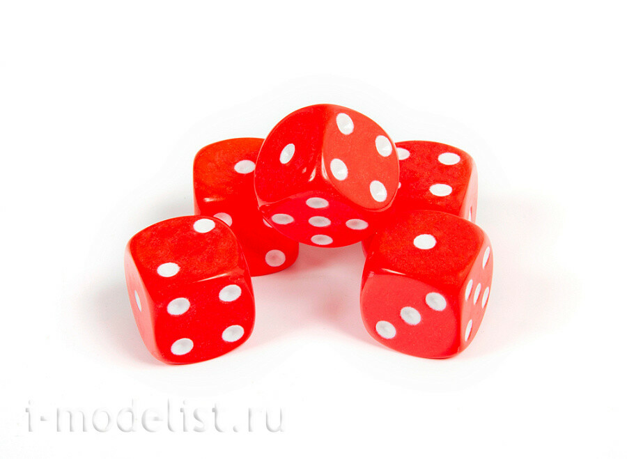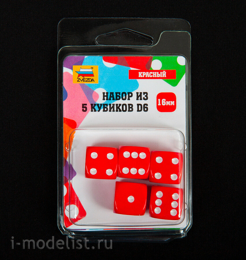 1229 Звезда Набор из 5 кубиков D6, 16мм. Красный с белыми точками в блистере