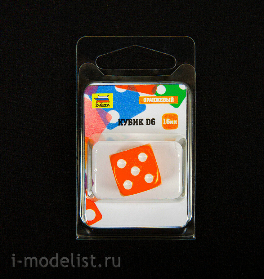 1231 Звезда Кубик D6, 16мм. Оранжевый с белыми точками в блистере