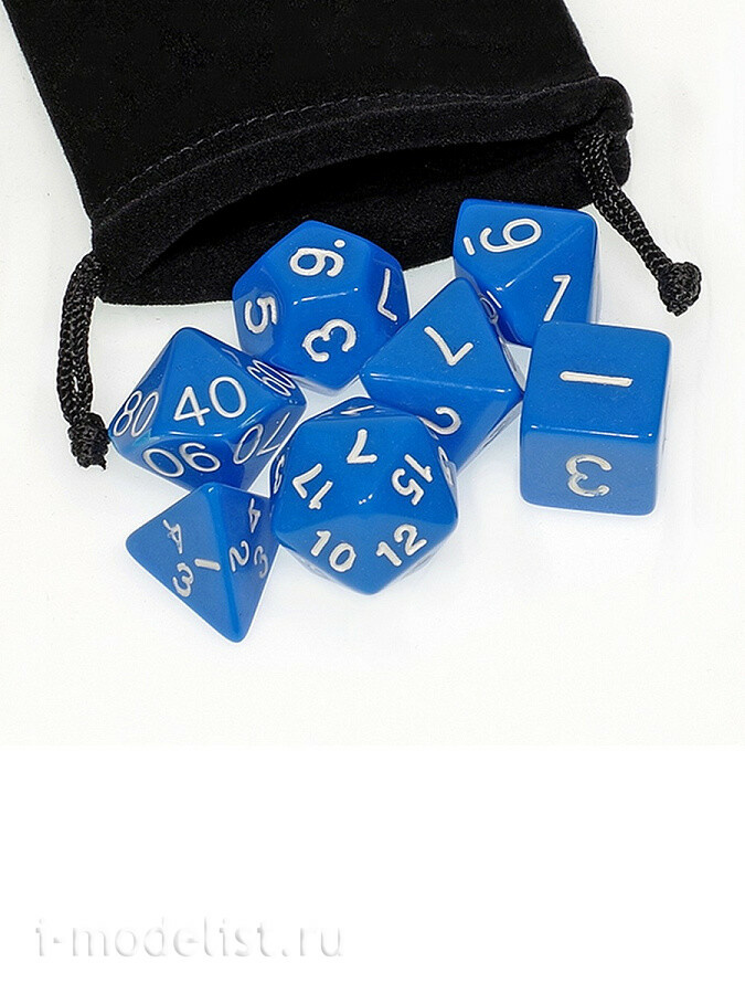 Набор из 7 кубиков (D4, D6, D8, D10-2, D12, D20) из пластика, а также бархатный мешочек для хранения