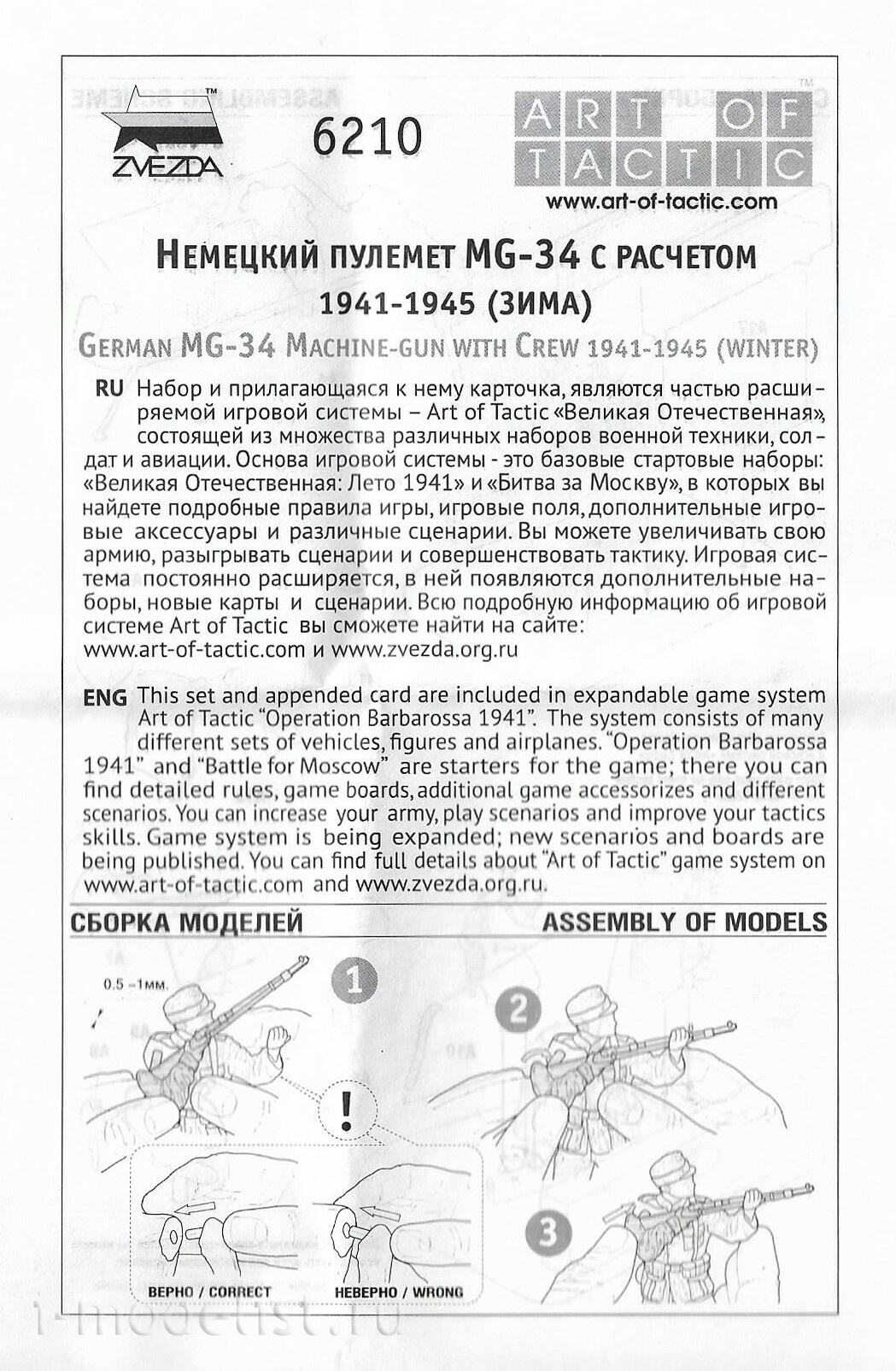 Историческая справка: Немецкие пулемётчики до зимы 1942 года были основой обороны немецкой армии. Несмотря на сложности, вызванные холодами, немецкие пехотинцы шли вперёд. Особую роль в наступлении и отражении советских контратак сыграли именно пулемёты немецкой армии. В условиях подмосковных городов и деревень, пулемёты, установленные в домах, превращались в ДОТы, вызывая массу проблем у наступающих частей Красной армии. Немецкий пулемет MG-34в годы ВОВ применялся как универсальное оружие. Мог использоваться в ручном и станковом вариантах. Стараясь избегать повторений, в новом мини-наборе мы добавили антураж – кирпичную стену. Набор теперь выглядит солиднее. Что обрадует моделистов и игроков. Набор будет использоваться в игре «Битва за Москву». Покупка данного набора разнообразит игровой процесс и расширит возможности игроков.