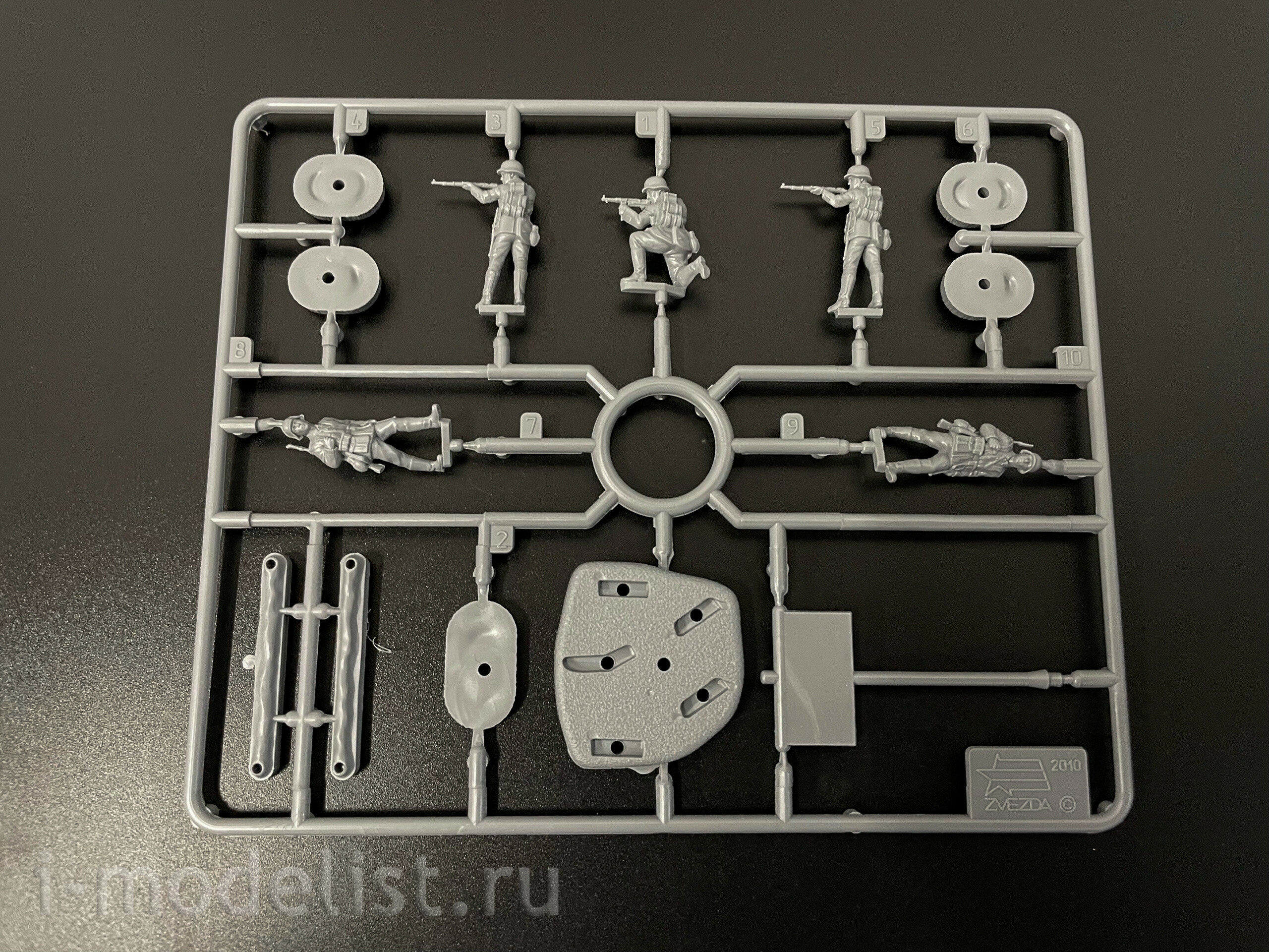 Набор деталей для сборки 10-ти неокрашенных солдатиков.