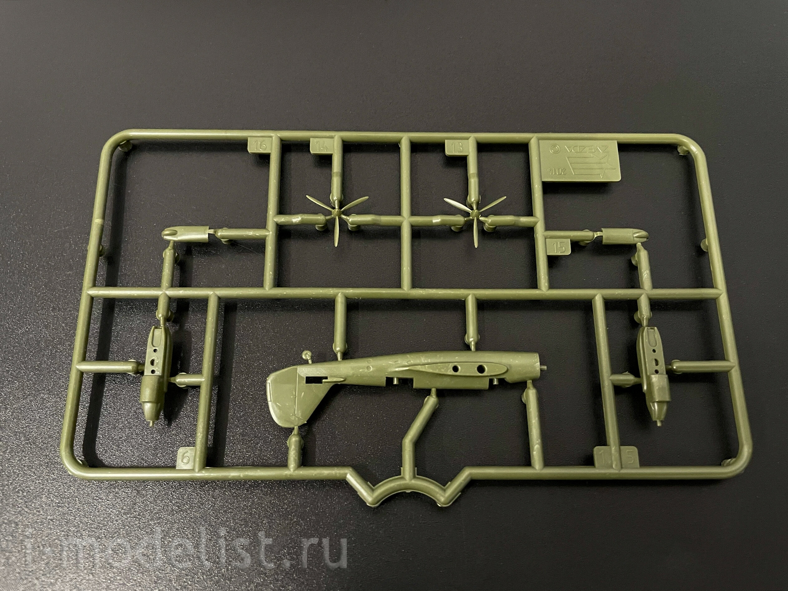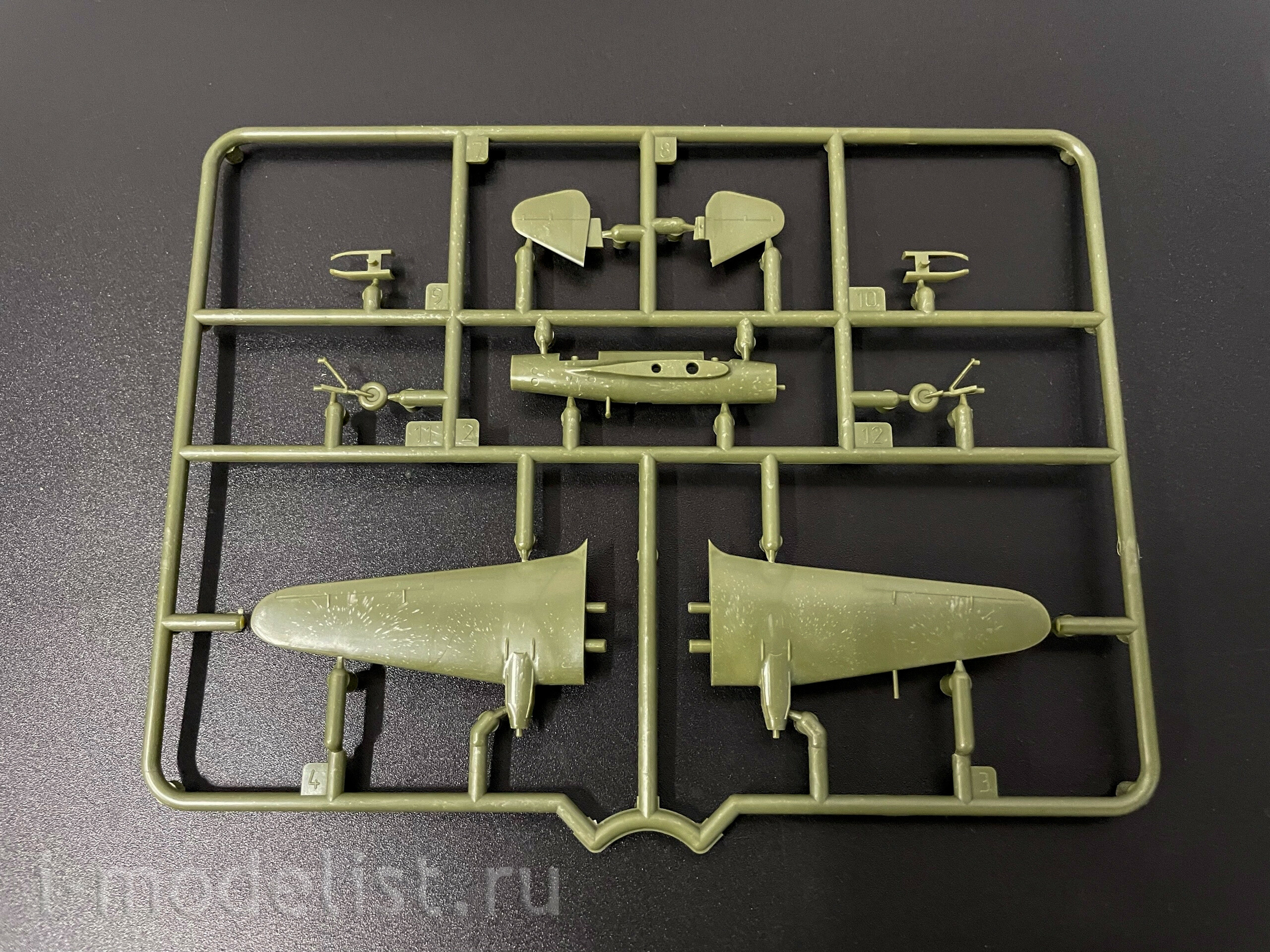 Набор деталей из пластмассы для сборки одной модели самолета.