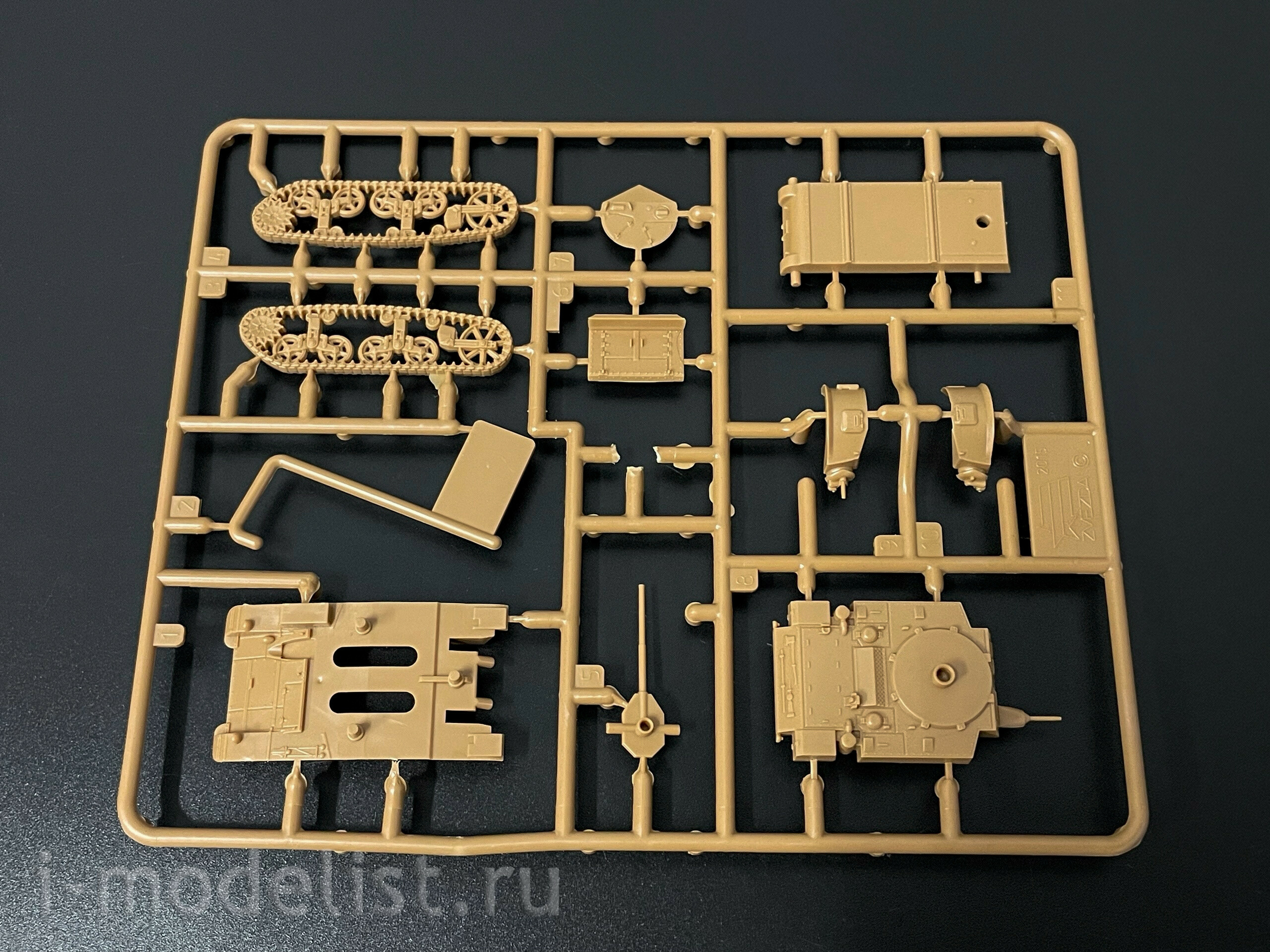 Набор деталей из пластмассы для сборки одной модели неокрашенного танка.