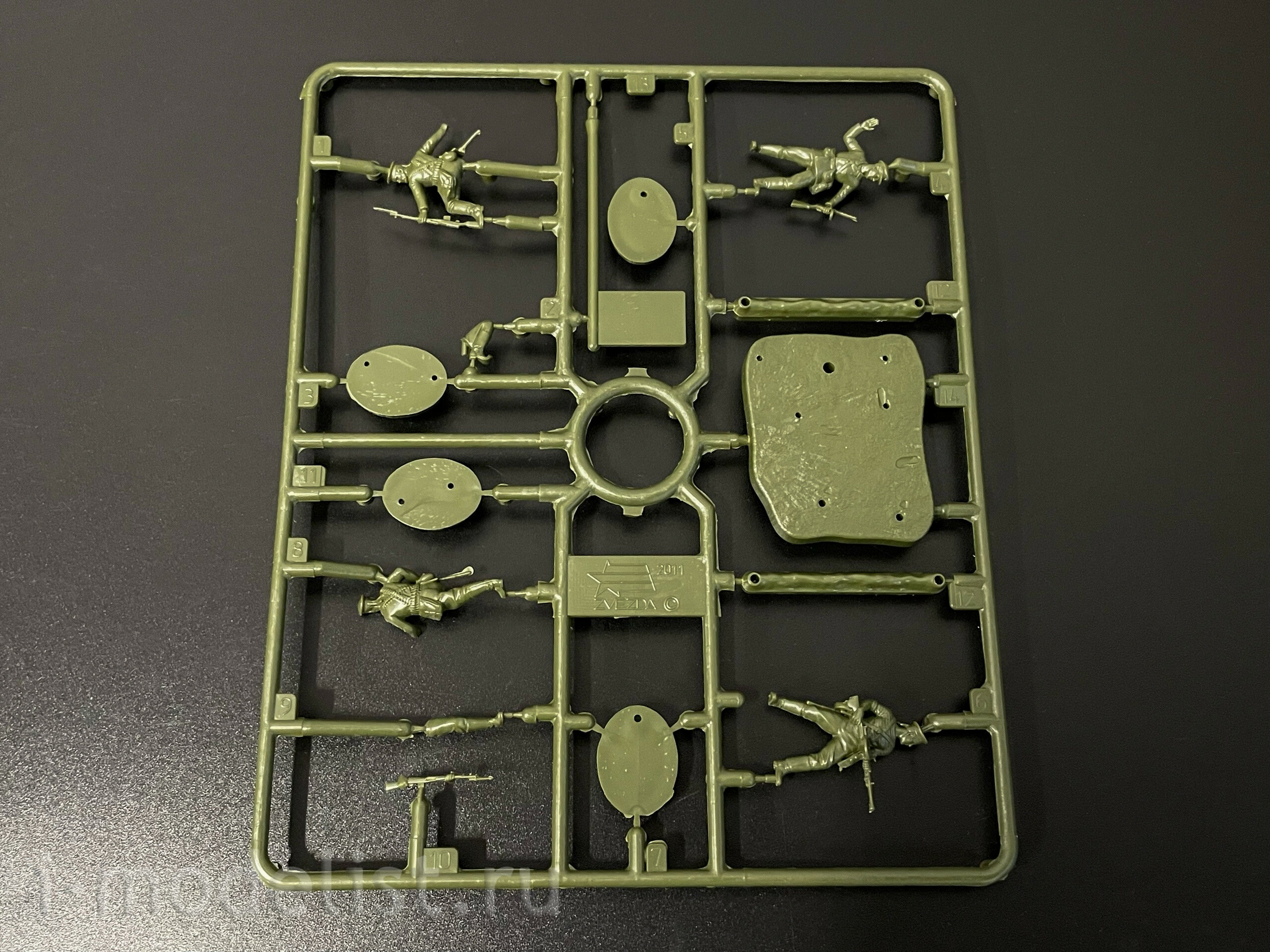 Набор деталей для сборки 4-х неокрашенных солдатиков.