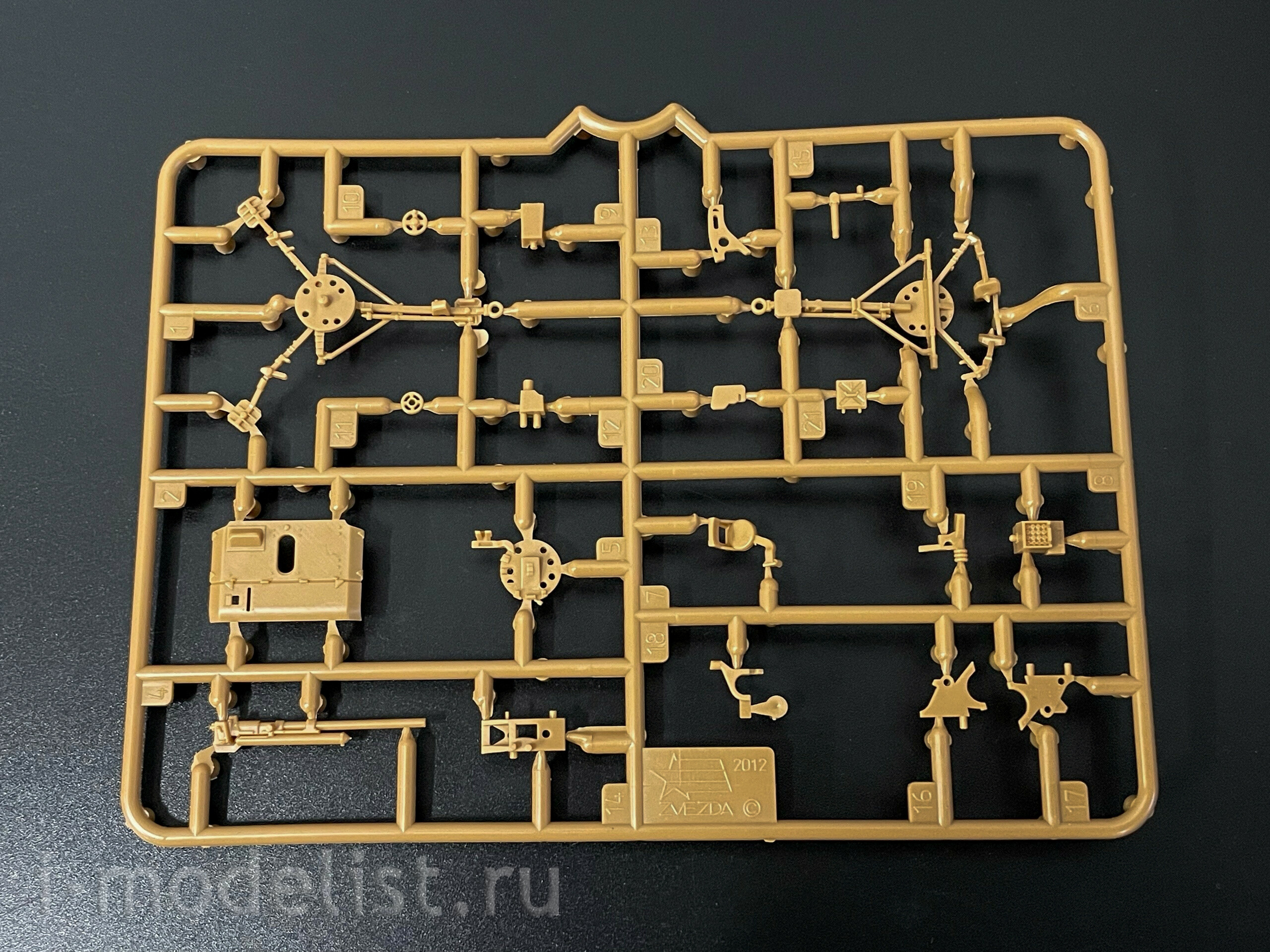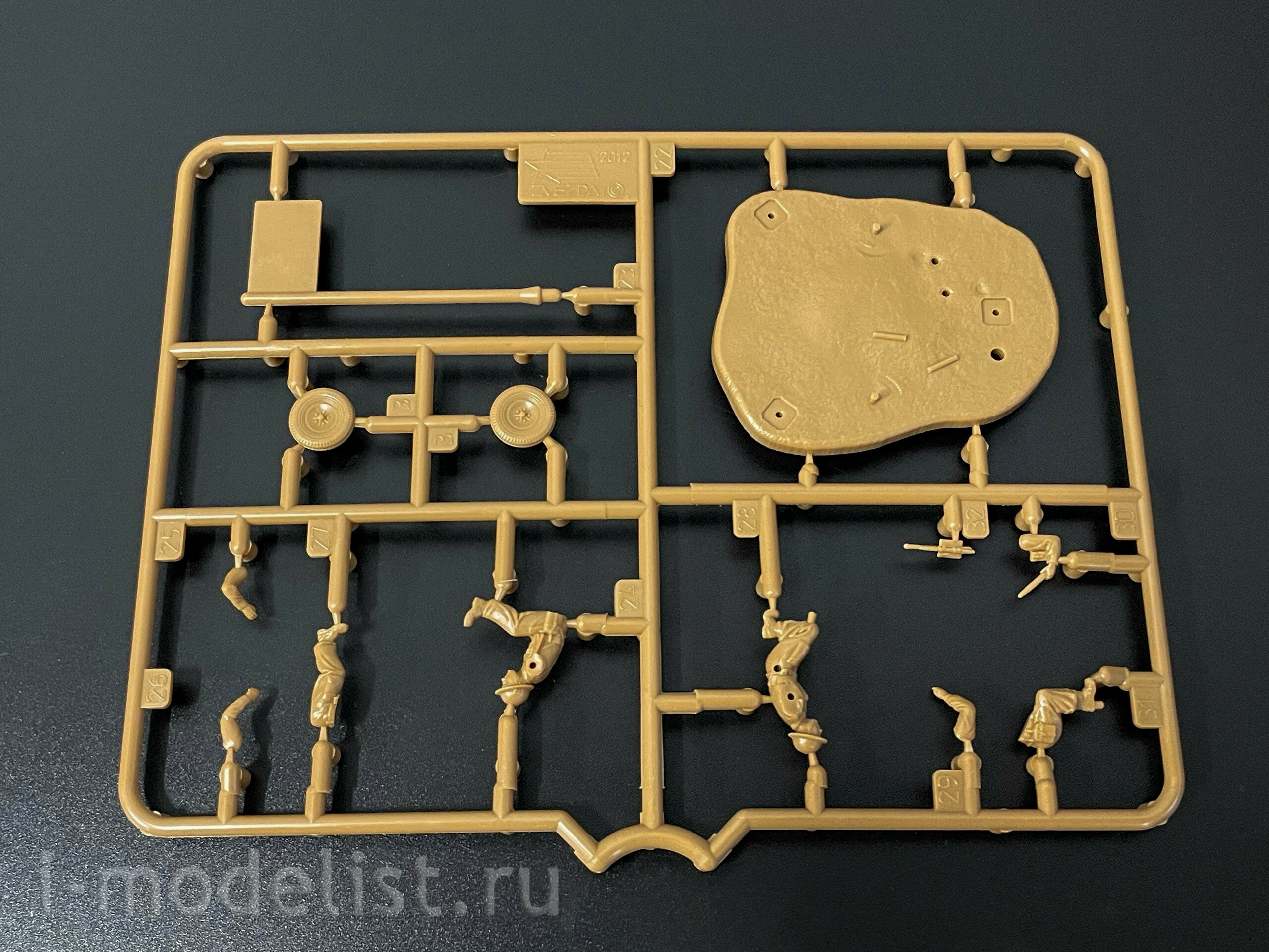 Набор деталей для сборки 2 неокрашенных фигур и одной пушки.