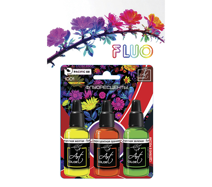 1001 Pacific88 Набор красок Art color Флюорисценты (Fluorescents), 3 шт.