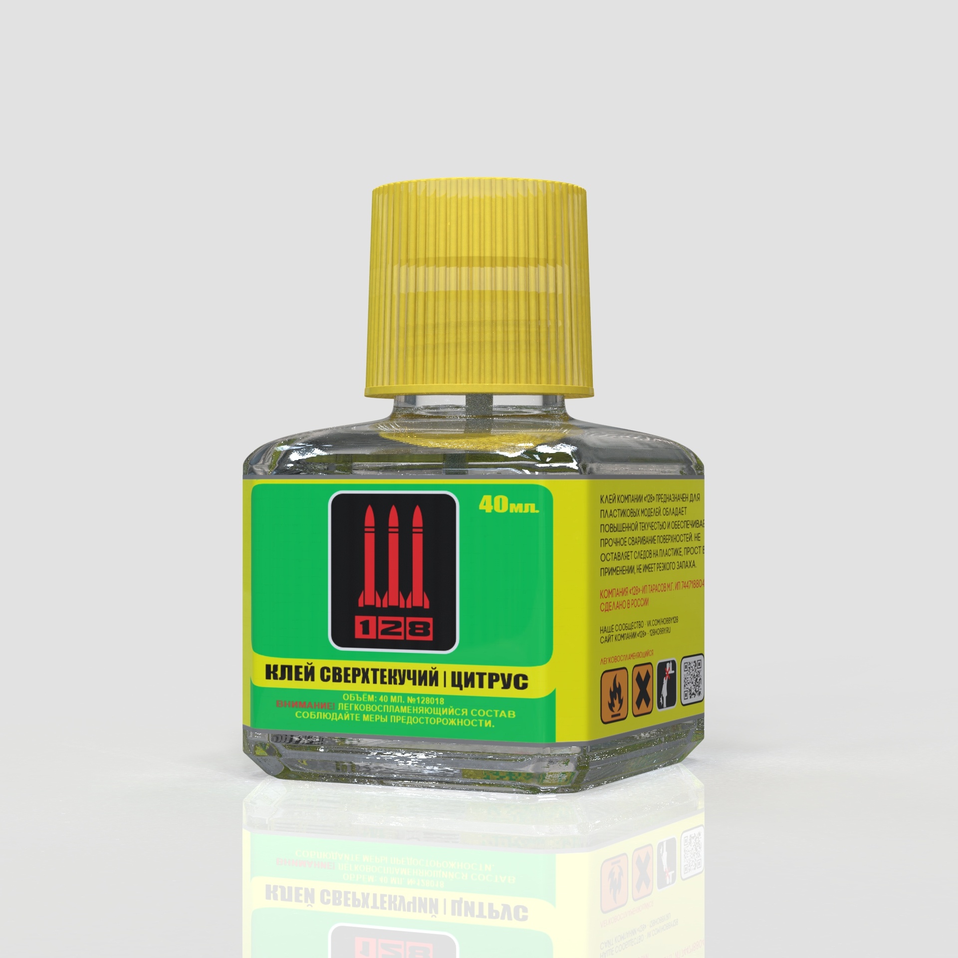 Клей сверхтекучий/цитрус 40 мл. - от компании "128"; обладает повышенным капиллярным эффектом, запахом цитрусовых фруктов, а также высокой проникающей способностью, не оставляя видимых следов. Прочное склеивание достигается за счет частичного растворения пластика при нанесении состава. Квадратная тара 40 мл. с синтетической кистью для нанесения клеевого состава.