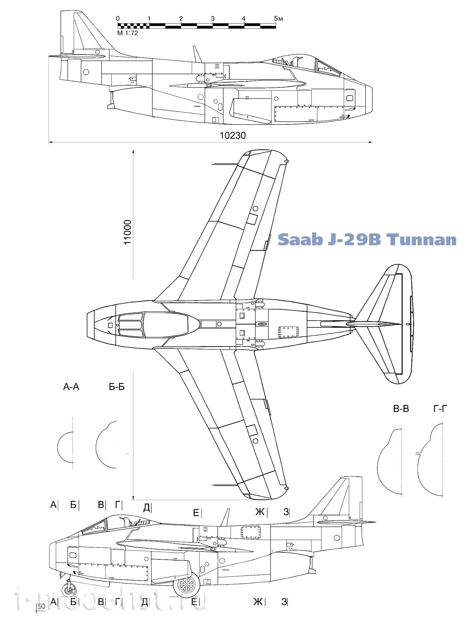 (ВВС Швеции в составе сил ООН в бывшем бельгийском Конго. 1960-1965 гг. Чертежи Saab J-29В Tunnan)