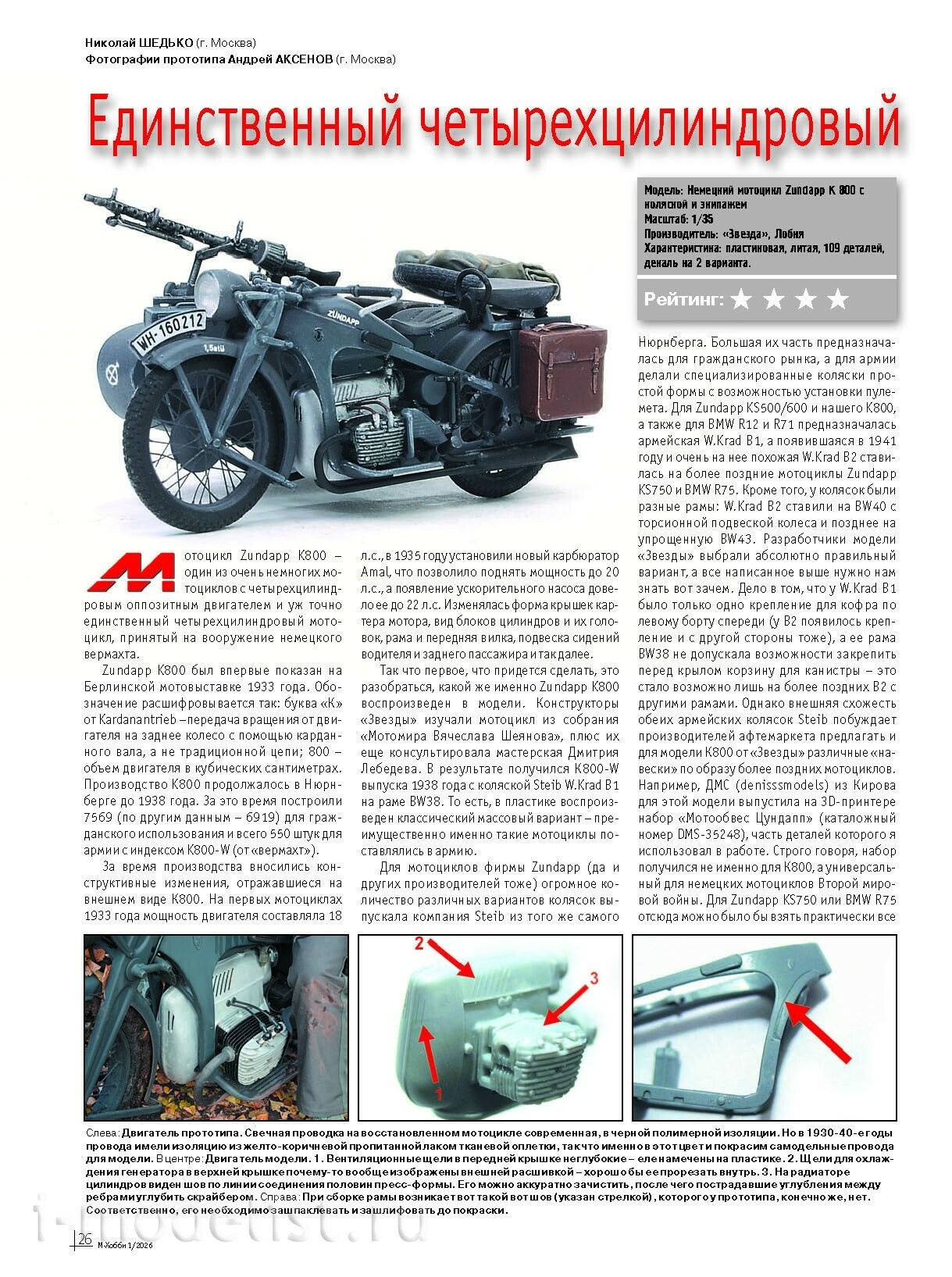 (Мотоцикл Zundapp K 800 с коляской и экипажем в 1/35 от «Звезды»)