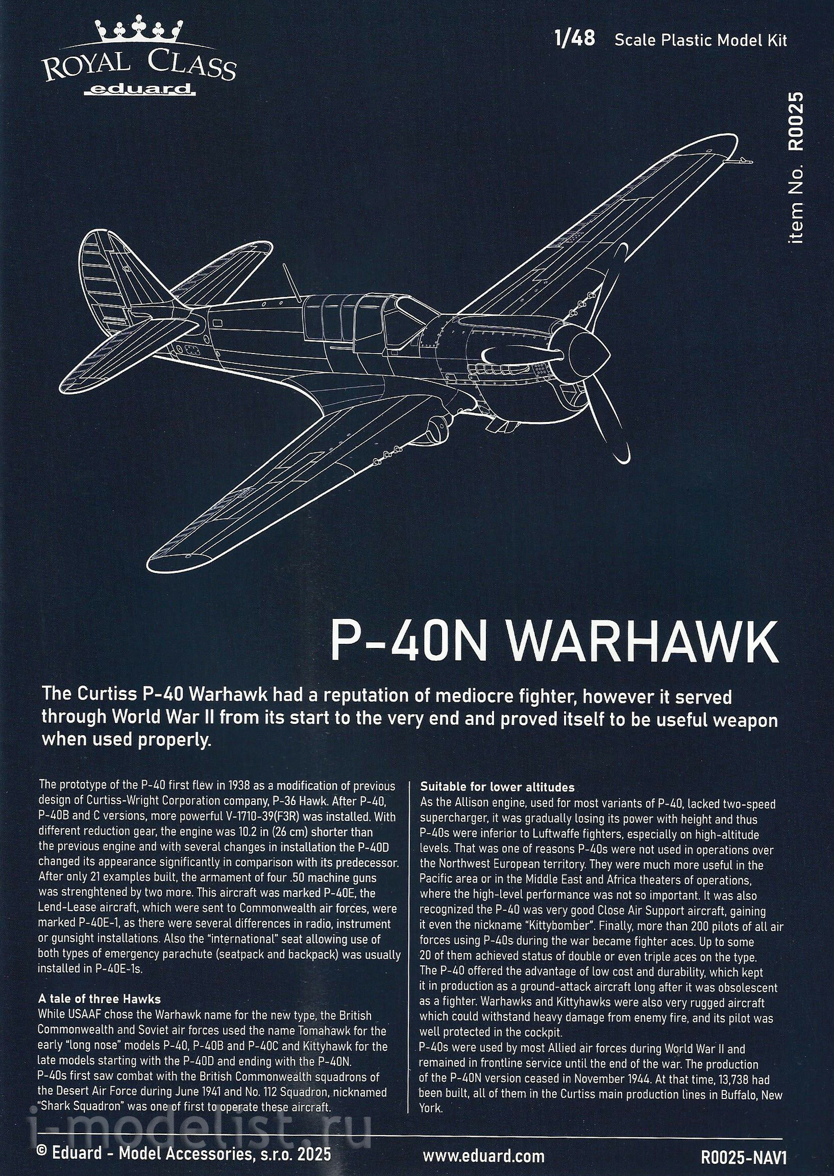 Комплект Royal Class edition американского истребителя P-40N Warhawk в масштабе 1/48.