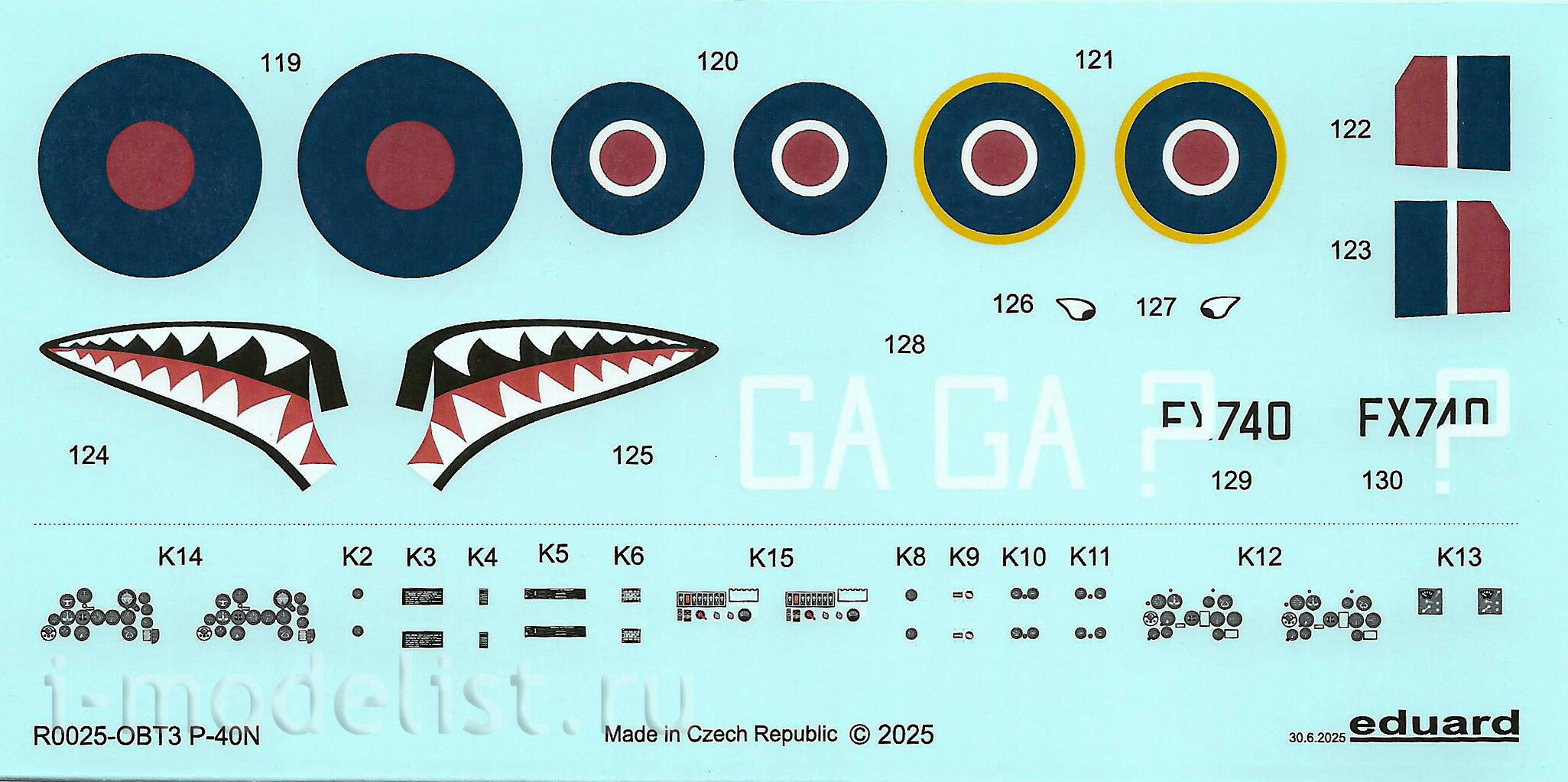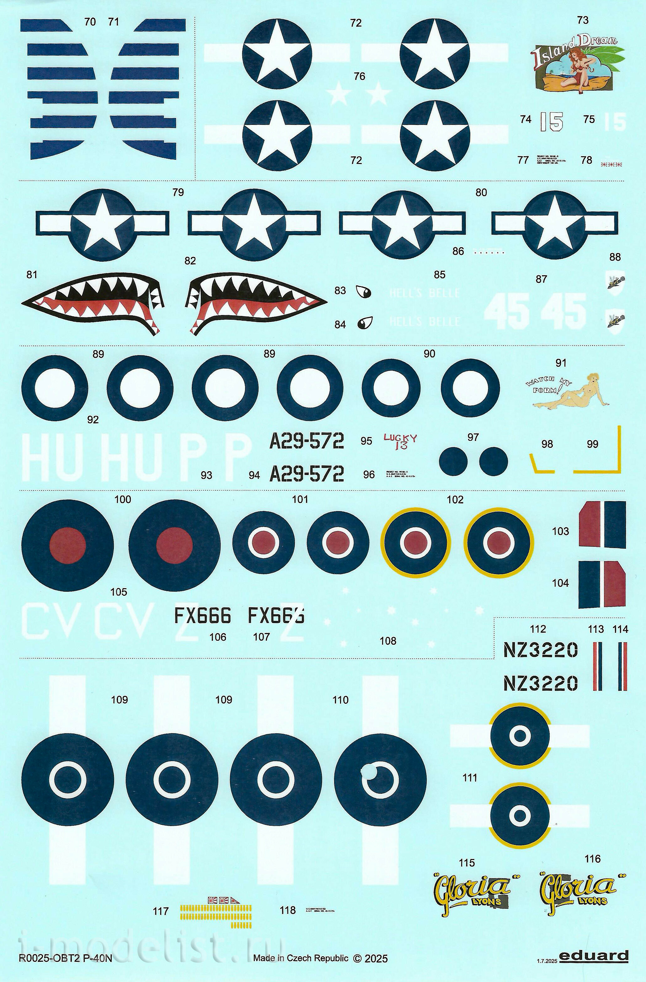 В коробке находятся пластиковые литники для двух полных комплектов, из которых можно собрать самолеты, летающие в ВВС США, Королевских ВВС Великобритании, RAAF, RNZAF.