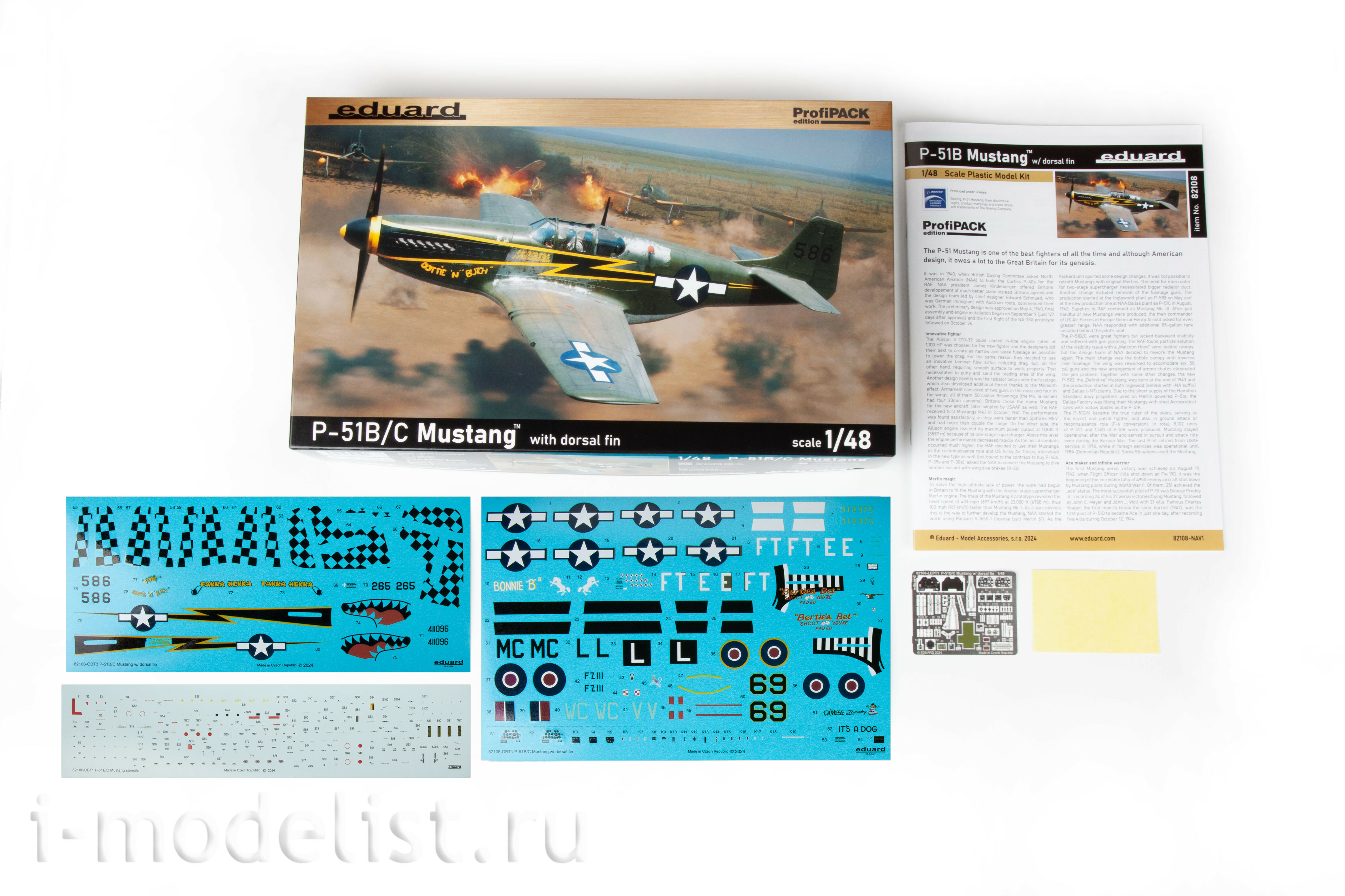 82108 Eduard 1/48 Американский истребитель P-51B/ C Mustang с вертикальным стабилизатором (ProfiPACK)